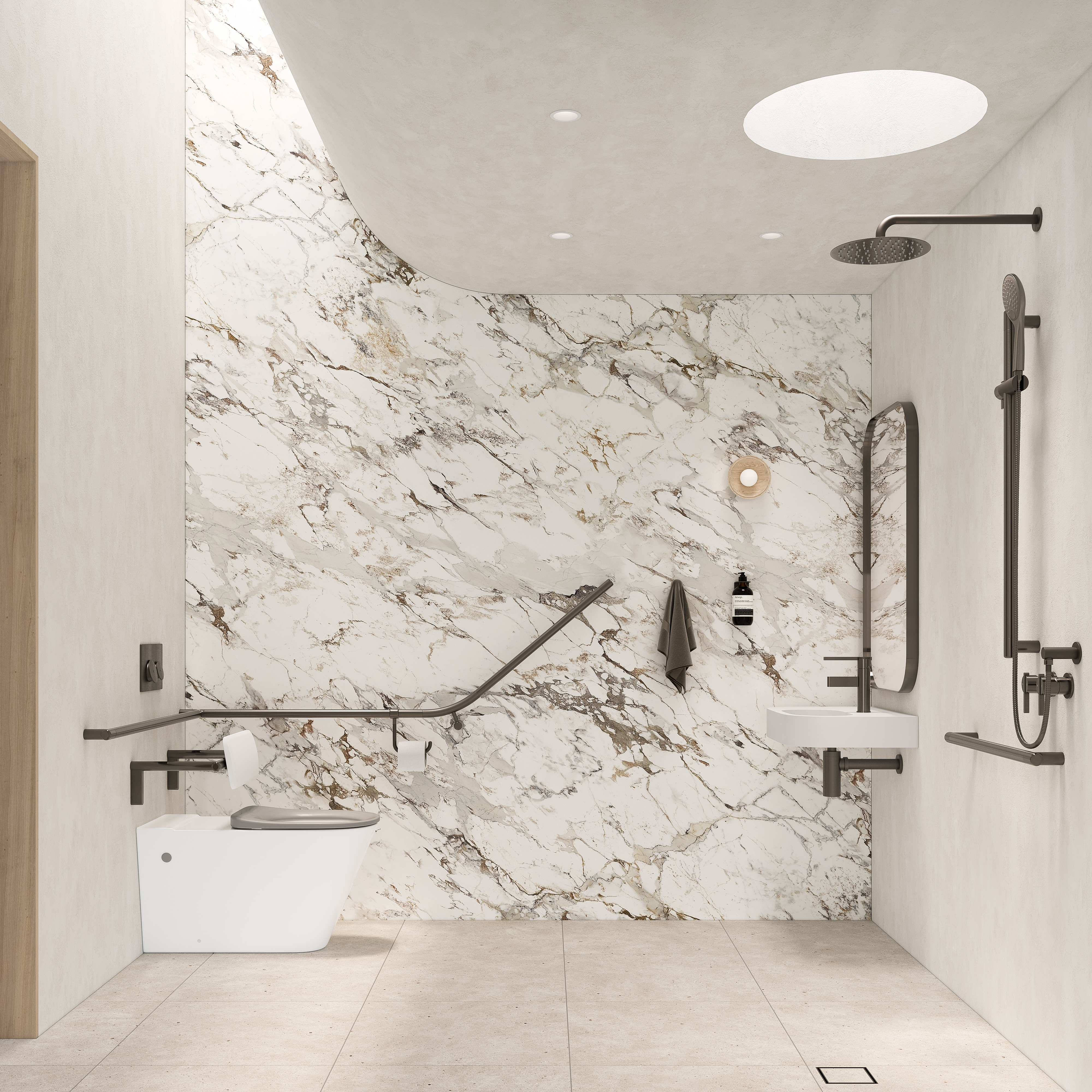 Home / Shop All / Accessories / Accessible Bathroom Accessories / Aliro Accessible 140° Continuous Grab Rail – Brushed Gunmetal