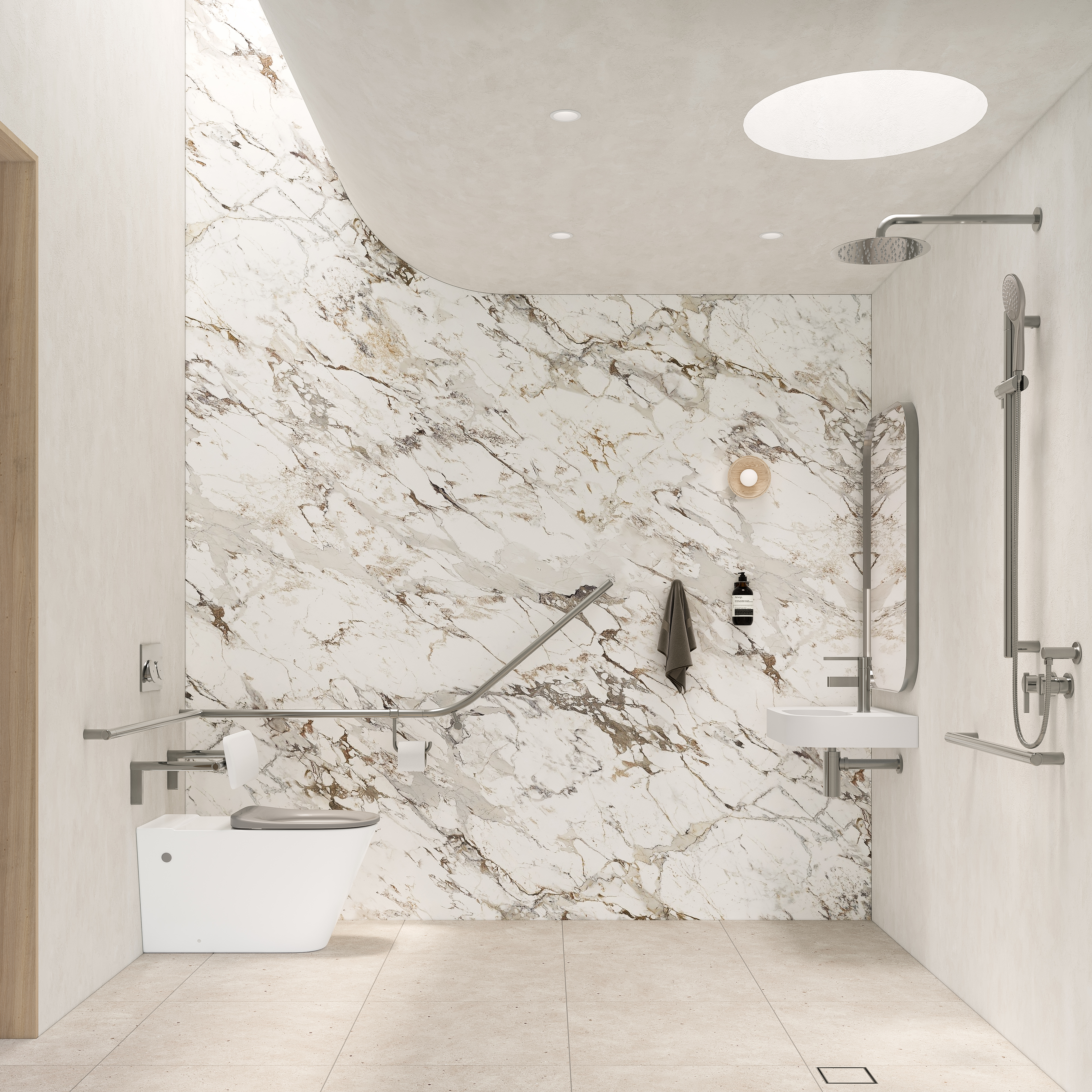 Constructed from 316 stainless steel, our wall-mounted Aliro Accessible 140° Continuous Grab Rail combines reliable support with highly durable, anti-corrosive properties.