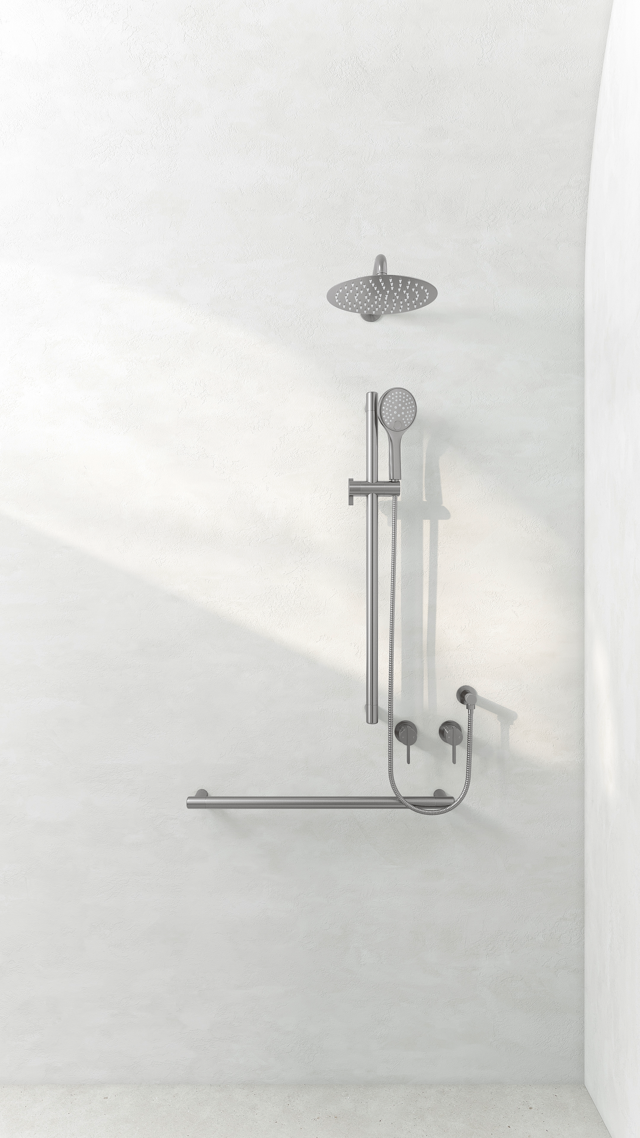 – The Aliro Shower Holder and Aliro Accessible Shower Grab Rail Set is not included with the Aliro 3-Function Shower Set and needs to be purchased separately.