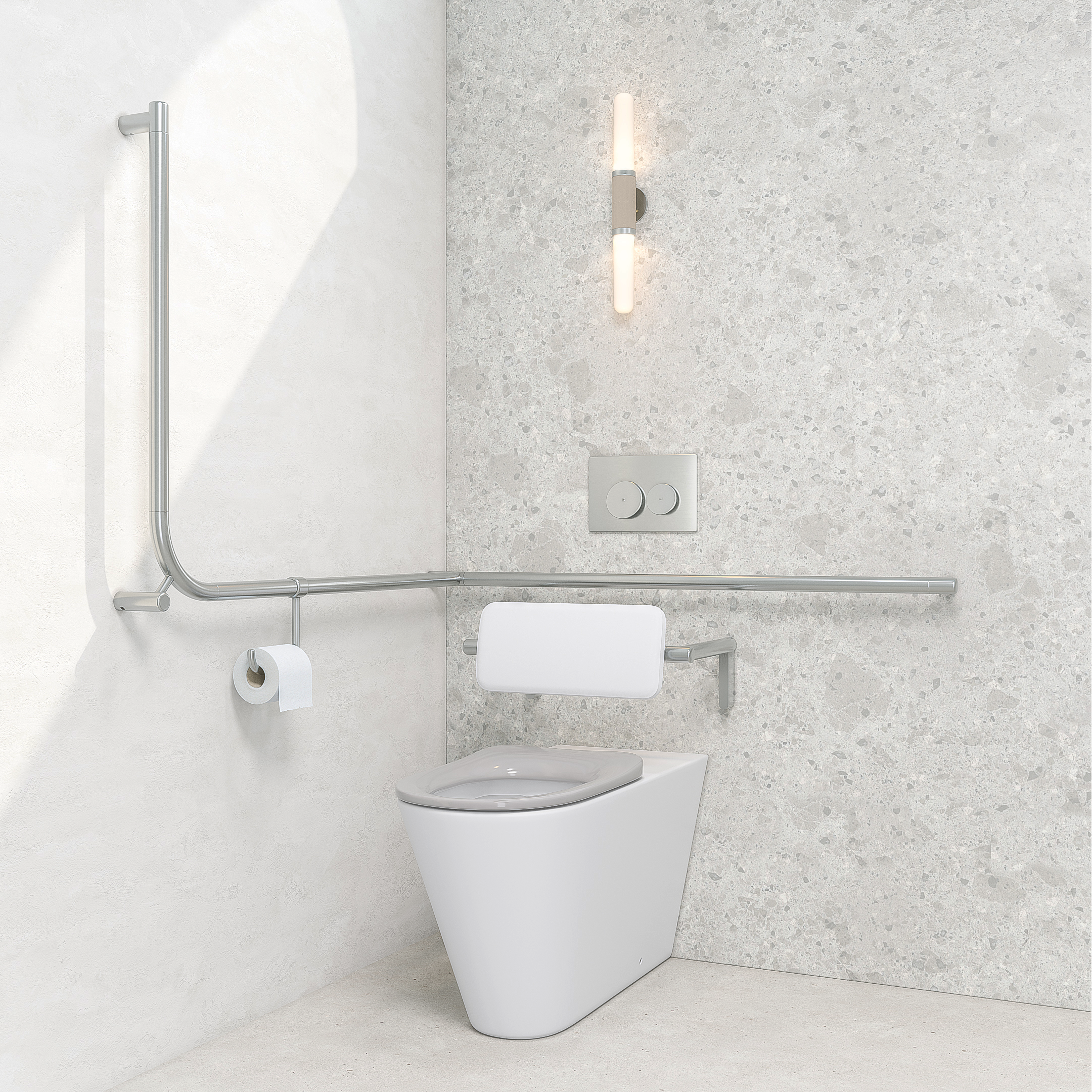 Constructed from 316 stainless steel, our wall-mounted Aliro Accessible 90° Continuous Grab Rail combines reliable support with highly durable, anti-corrosive properties.