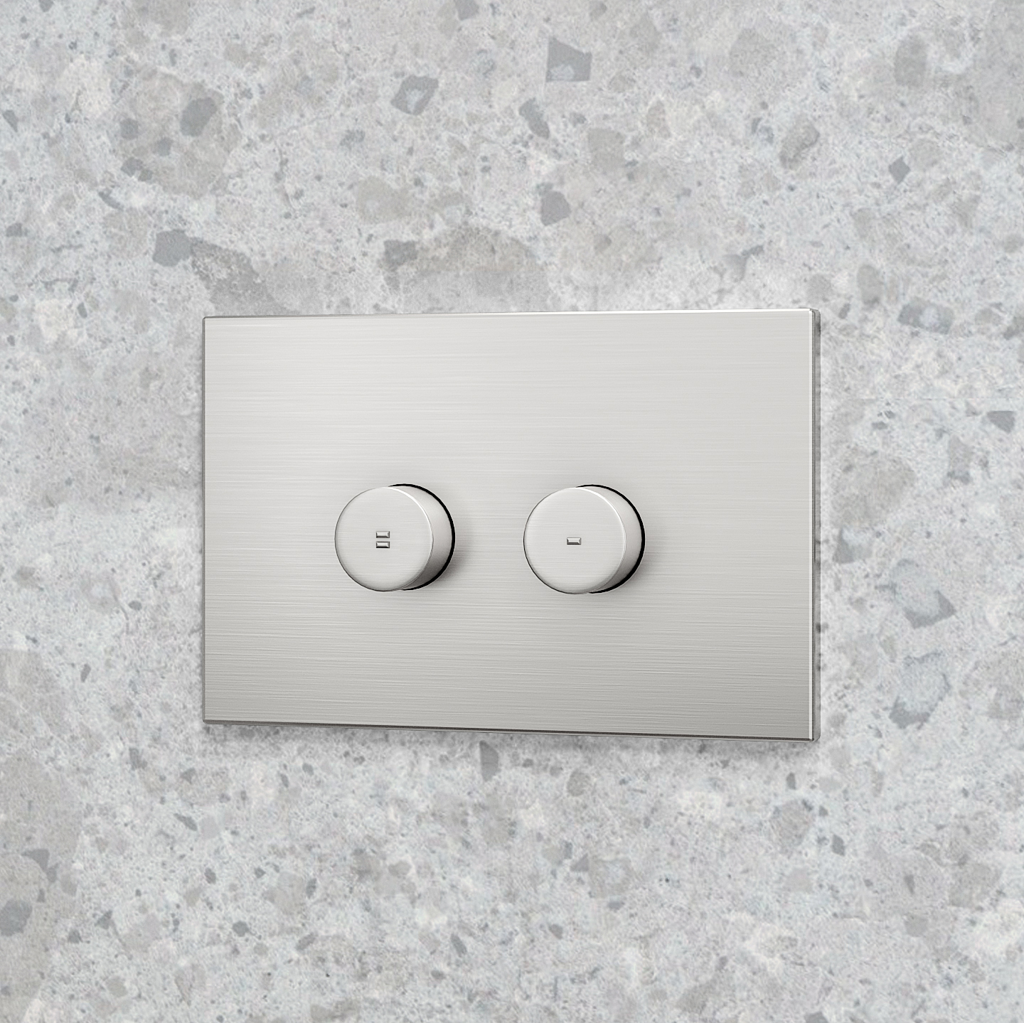 Our elegant Aliro Accessible Pneumatic Flush Button features a dual flush option and a space-saving in-wall cistern that uses air pressure to activate the flush.