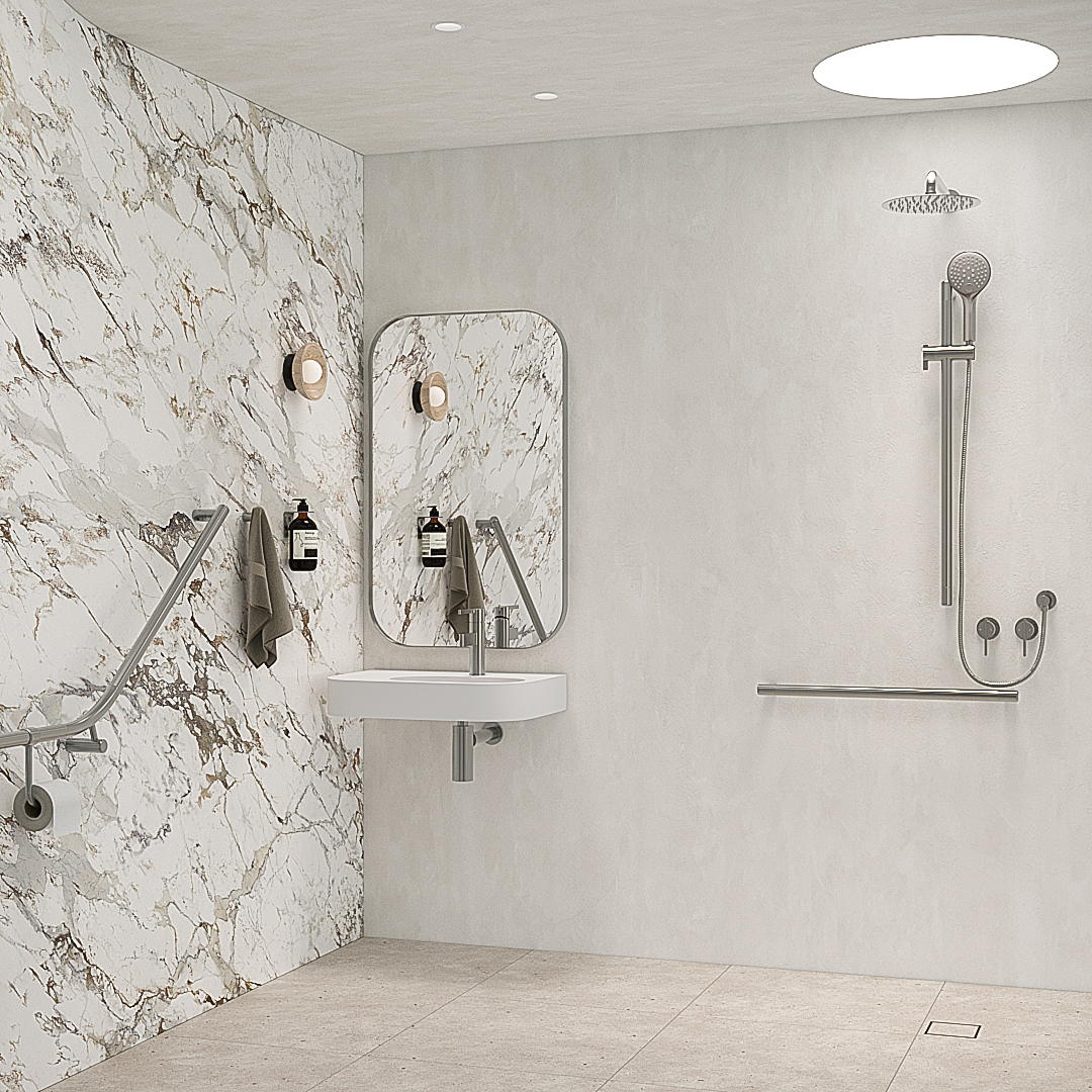 Constructed from 316 stainless steel, our Aliro Accessible Shower Grab Rail Set combines reliable support with highly durable, anti-corrosive properties.