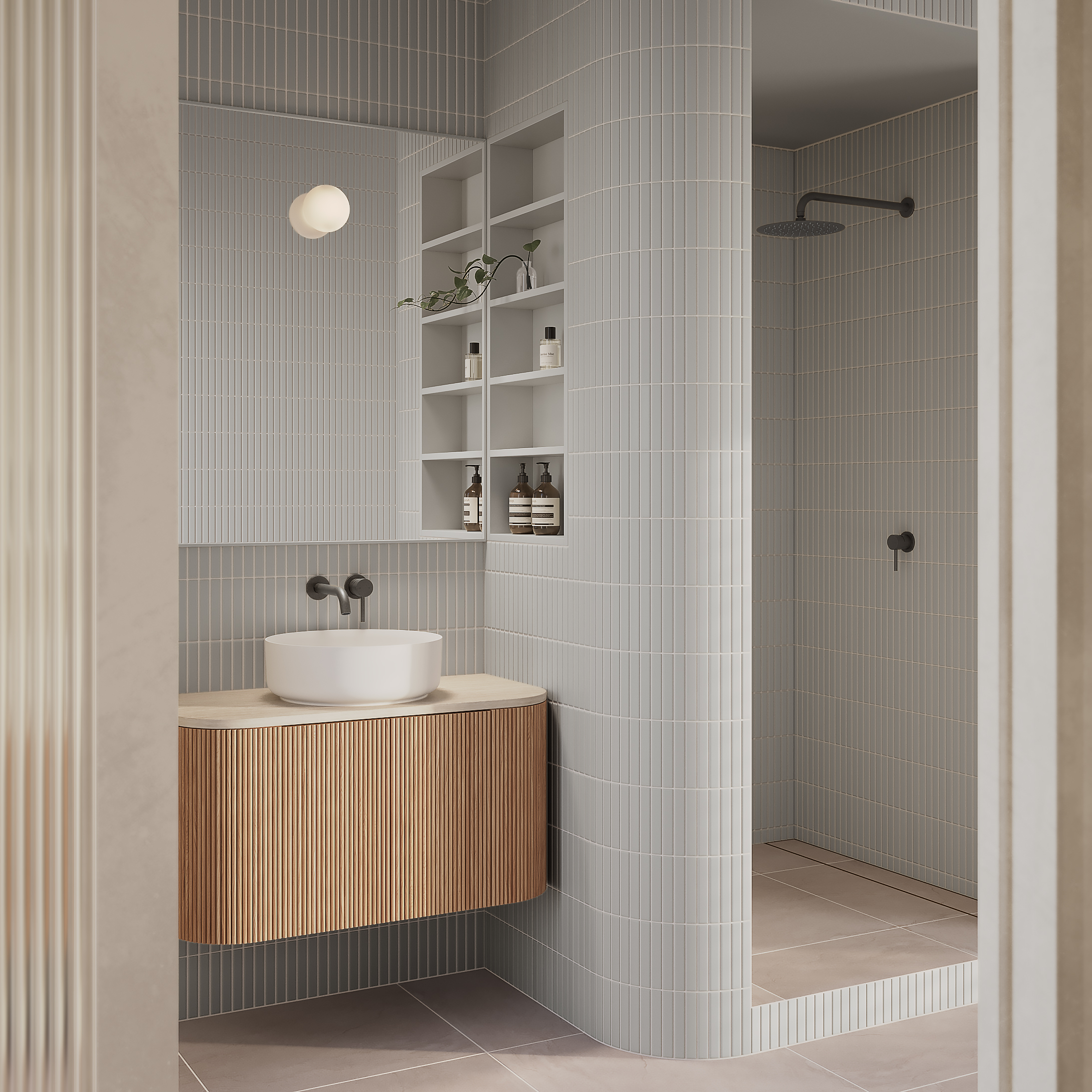 The Atami Finger Mosaic is ideal for bathrooms, splashbacks, and feature walls and is suitable for outdoor installation. It is not recommended for floor installation.