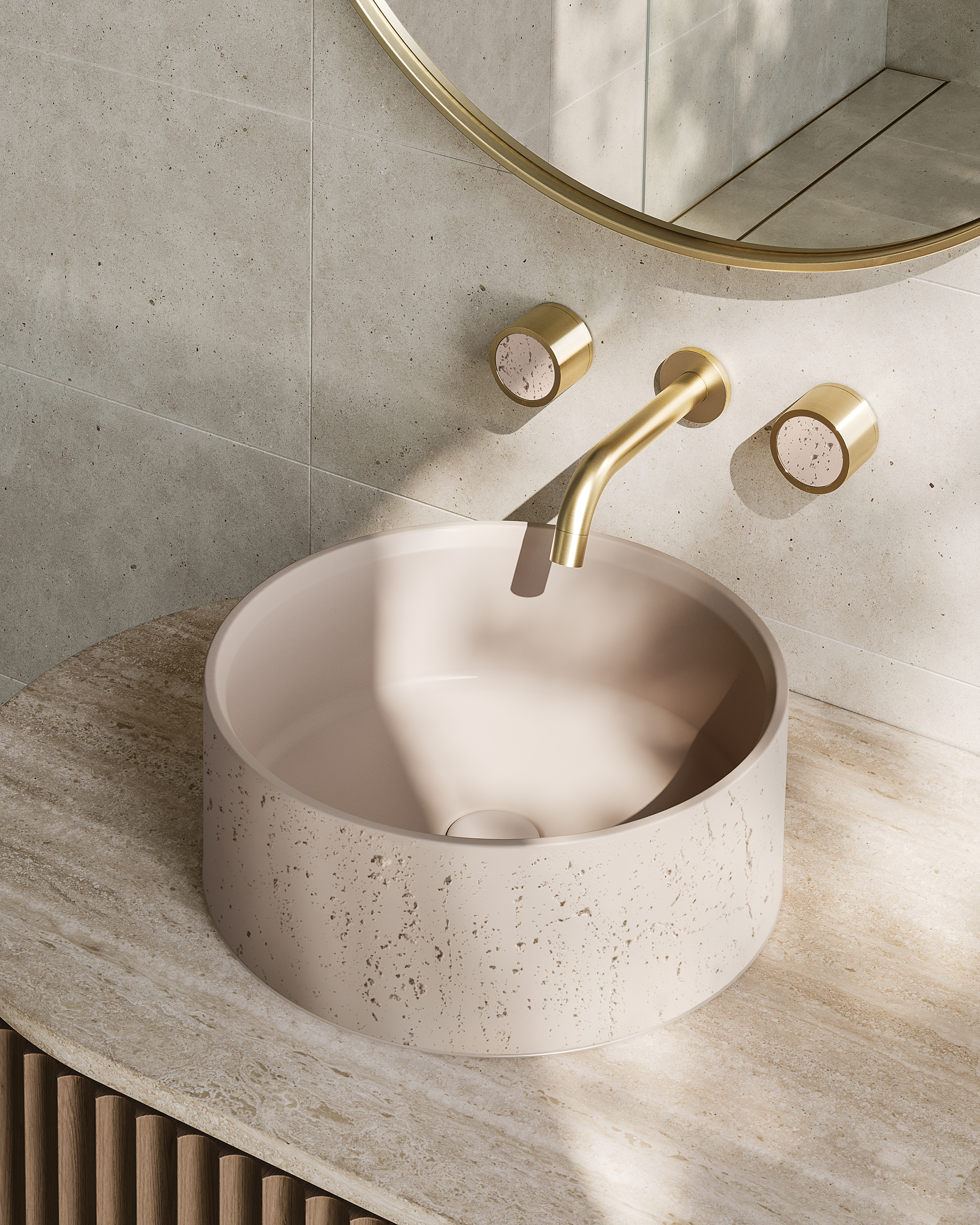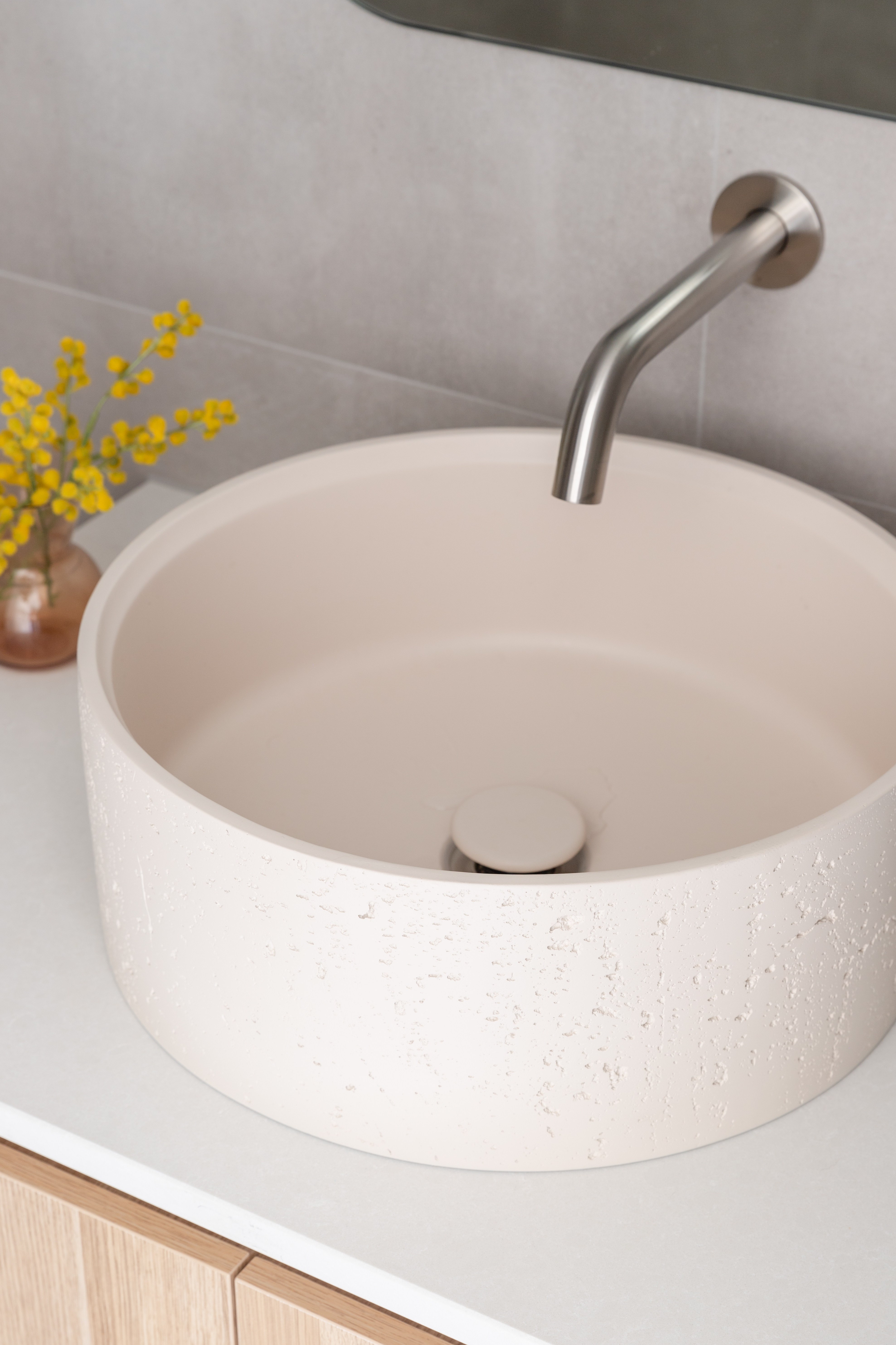 Unearth beauty in your space with the distinctive Atelis Concrete Basin. The genuine concrete construction creates a one-off textural aesthetic for each product, uniquely defining your design.