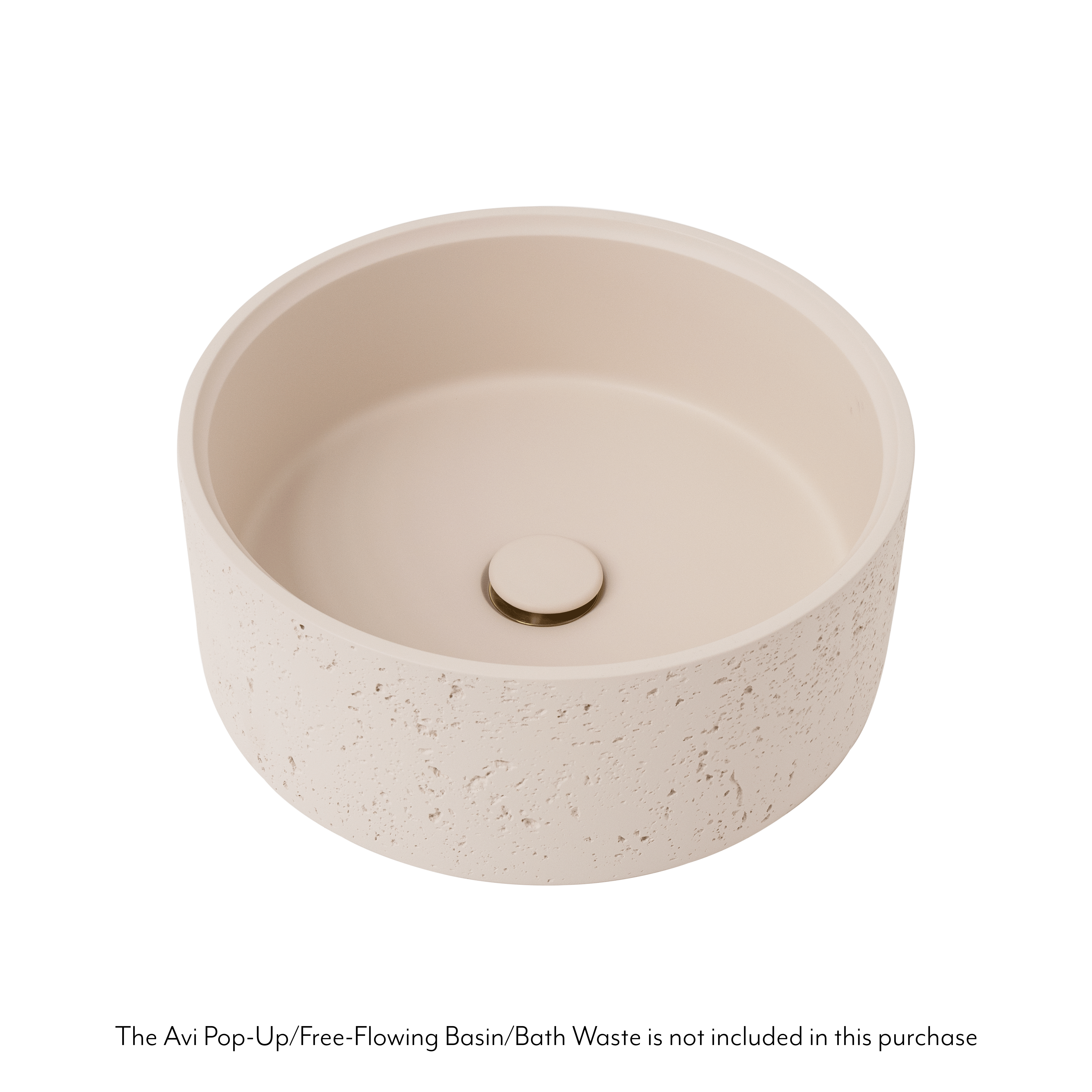 – The Atelis Concrete Basin includes a matching concrete pop-up lid; however, you will need to purchase the Avi Pop-Up Waste. The stock image shown has not been installed with our Avi Pop Up Waste.