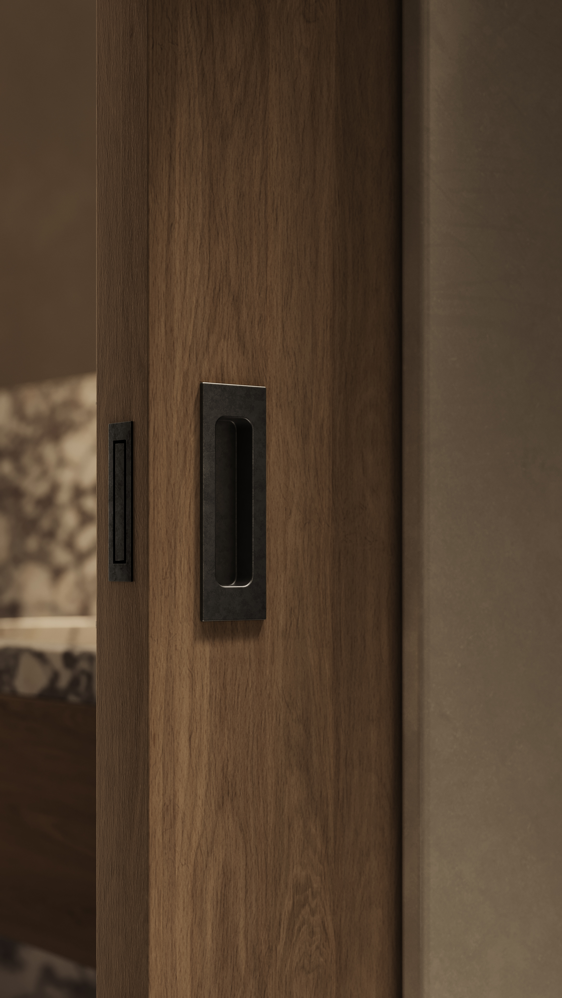 The Atley Rectangular Flush Pull adds the ideal finishing touch to your home, allowing you to smoothly open and close your bathroom cavity sliding doors.