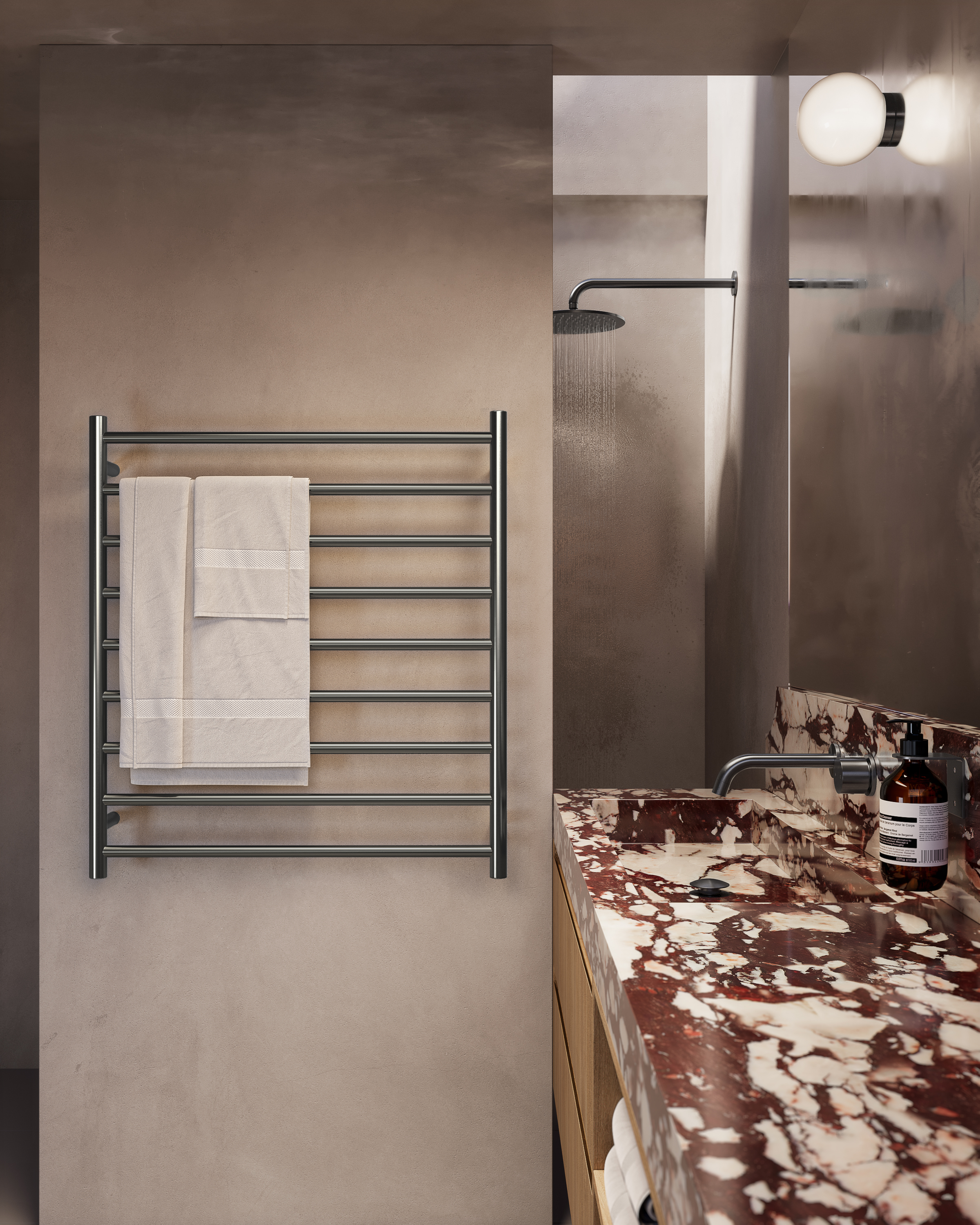 Elysian 9-Bar Heated Towel Ladder (12v) - Brushed Gunmetal