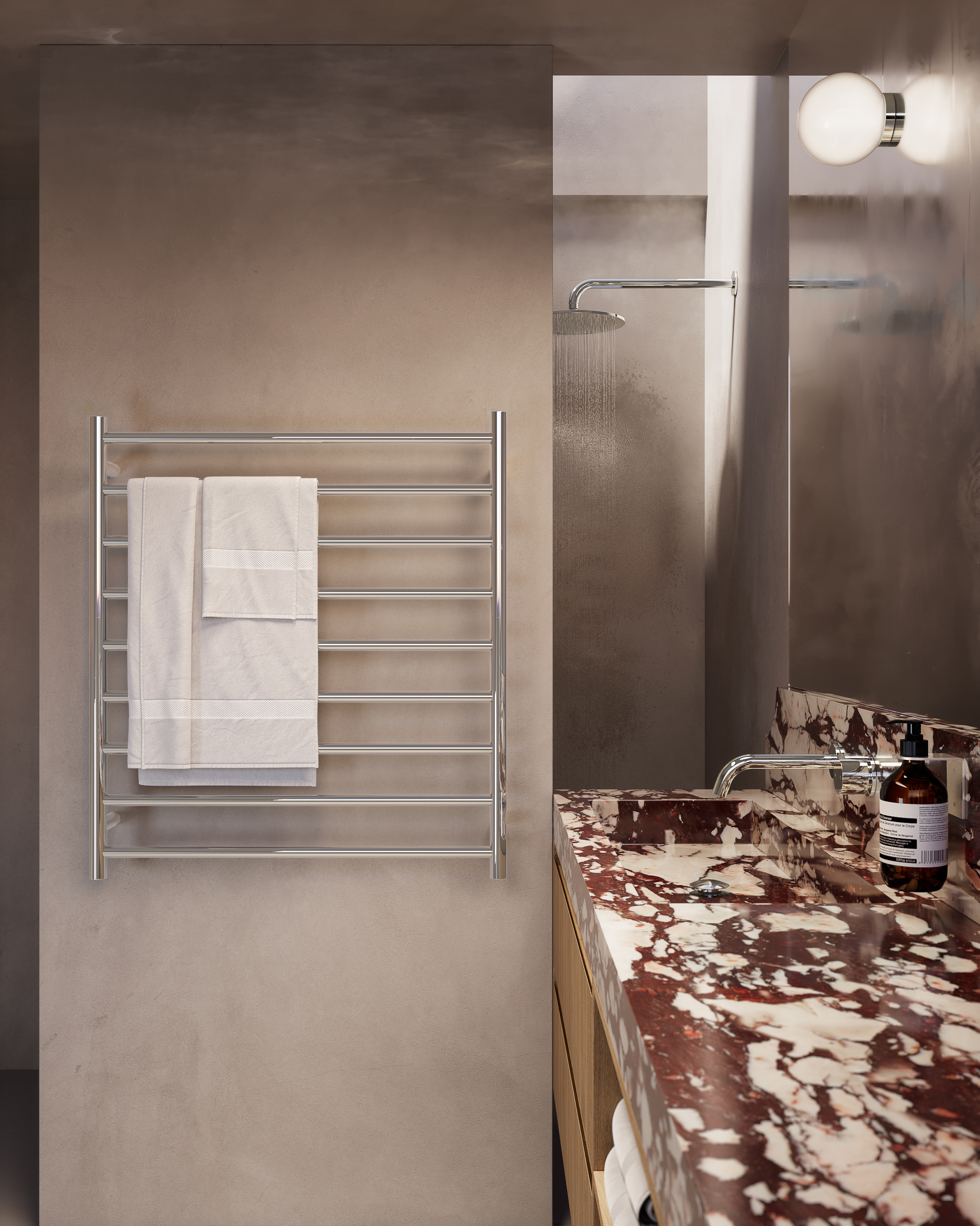 Crafted from durable 304 stainless steel and featuring evenly distributed internal heating, this beautiful wall-mounted fixture is both stylish and highly functional. Our range of premium finishes allows you to seamlessly integrate it into your interior design.