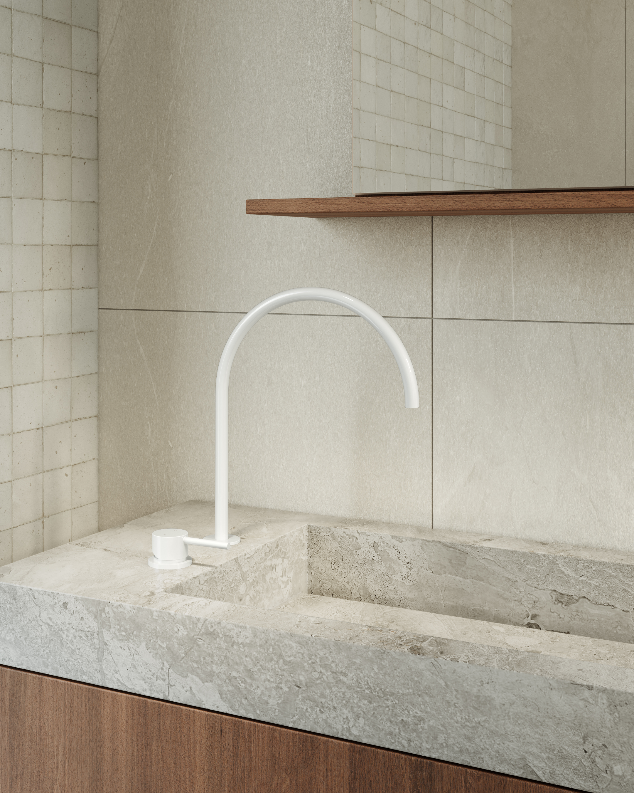 Your benchtop must not be more than 30mm thick to install the Elysian Bench-Mounted Minimal Mixer.