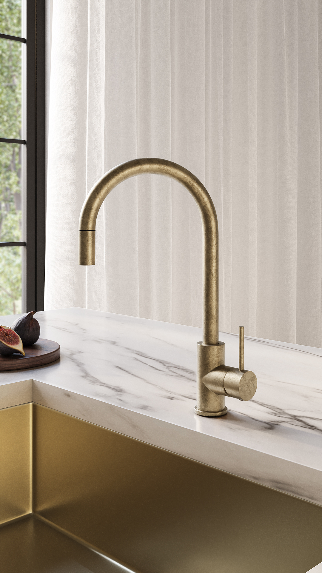 Elysian Commercial Pull-Out Kitchen Mixer - Tumbled Aged Brass
