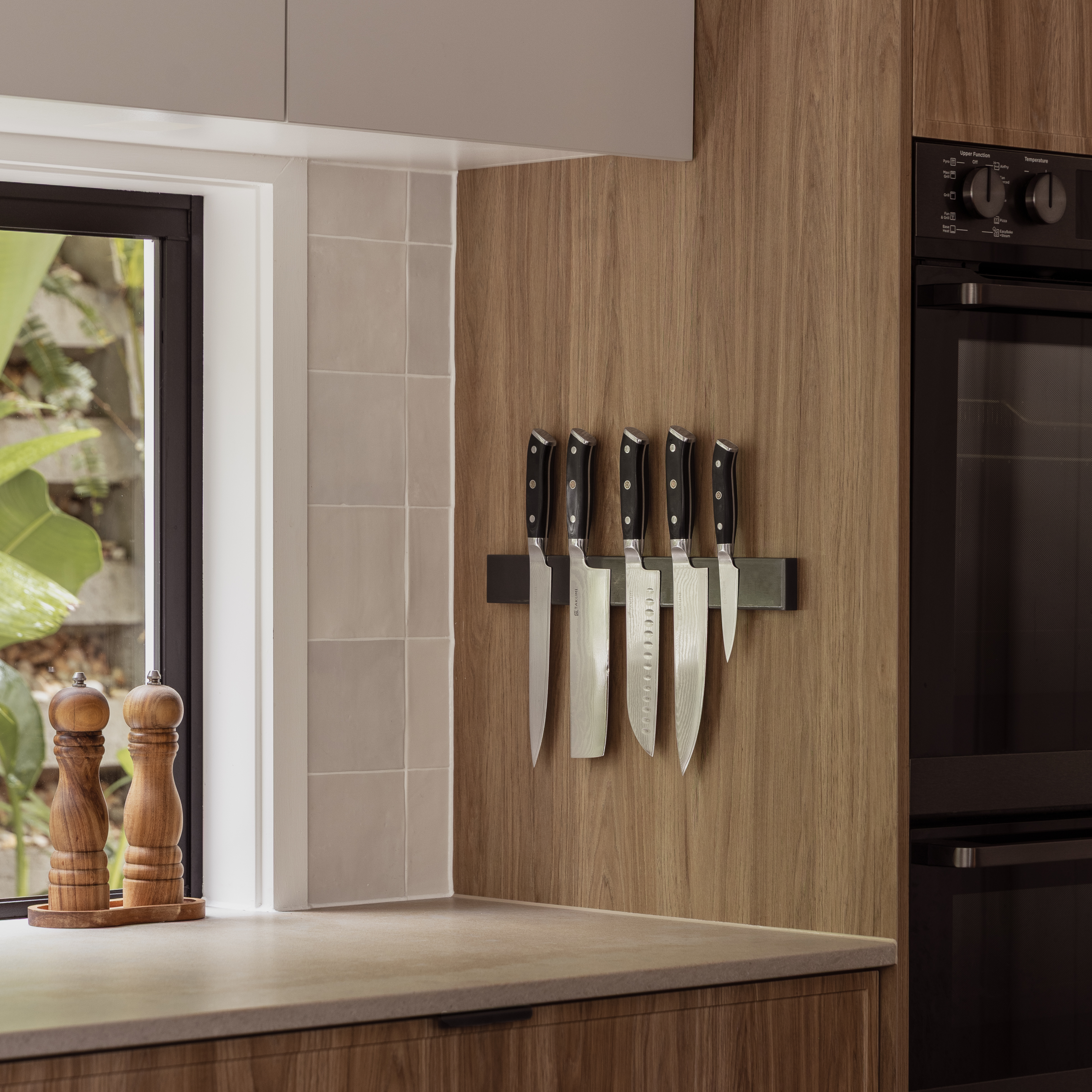 The Kenzo Magnetic Knife Rack guarantees secured storage within a stylish and compact accessory – taking your slicing and dicing game to a whole new level.