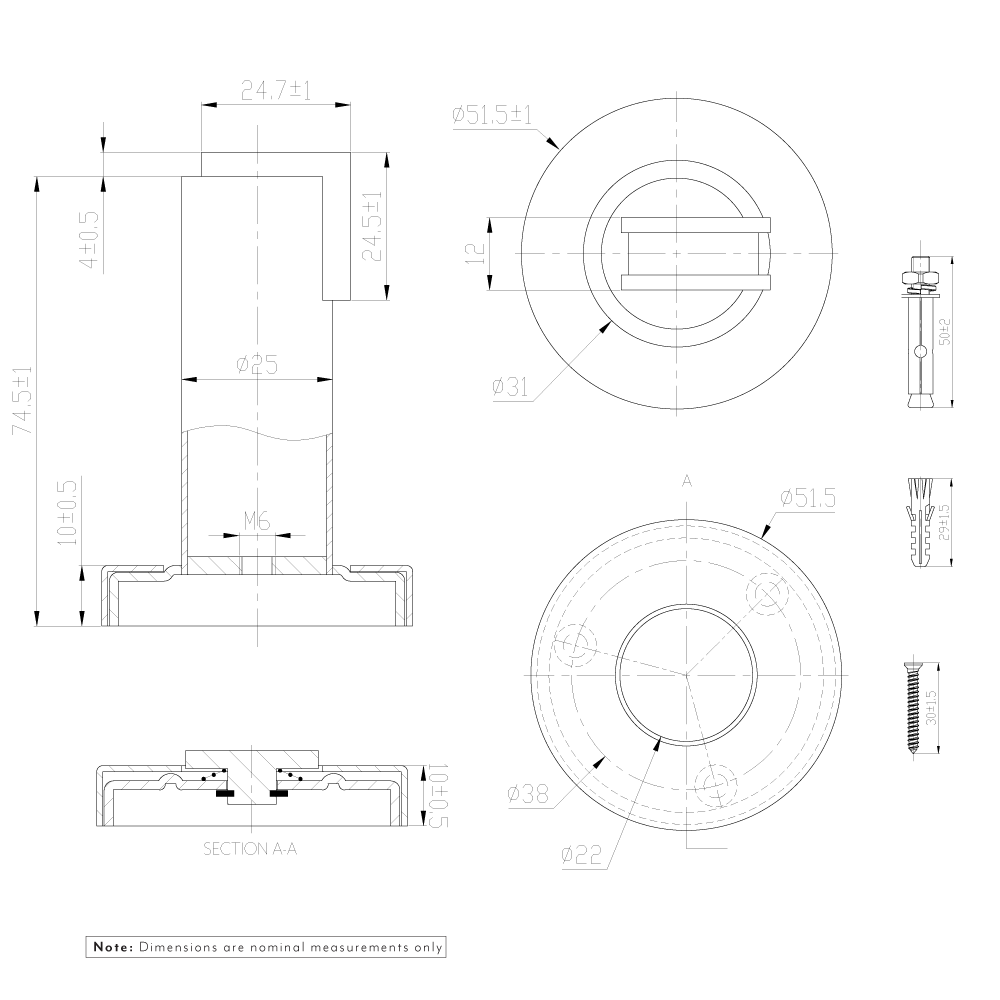| Dimensions (mm) | Projection: 74.5mm Width: 51.5mm |
