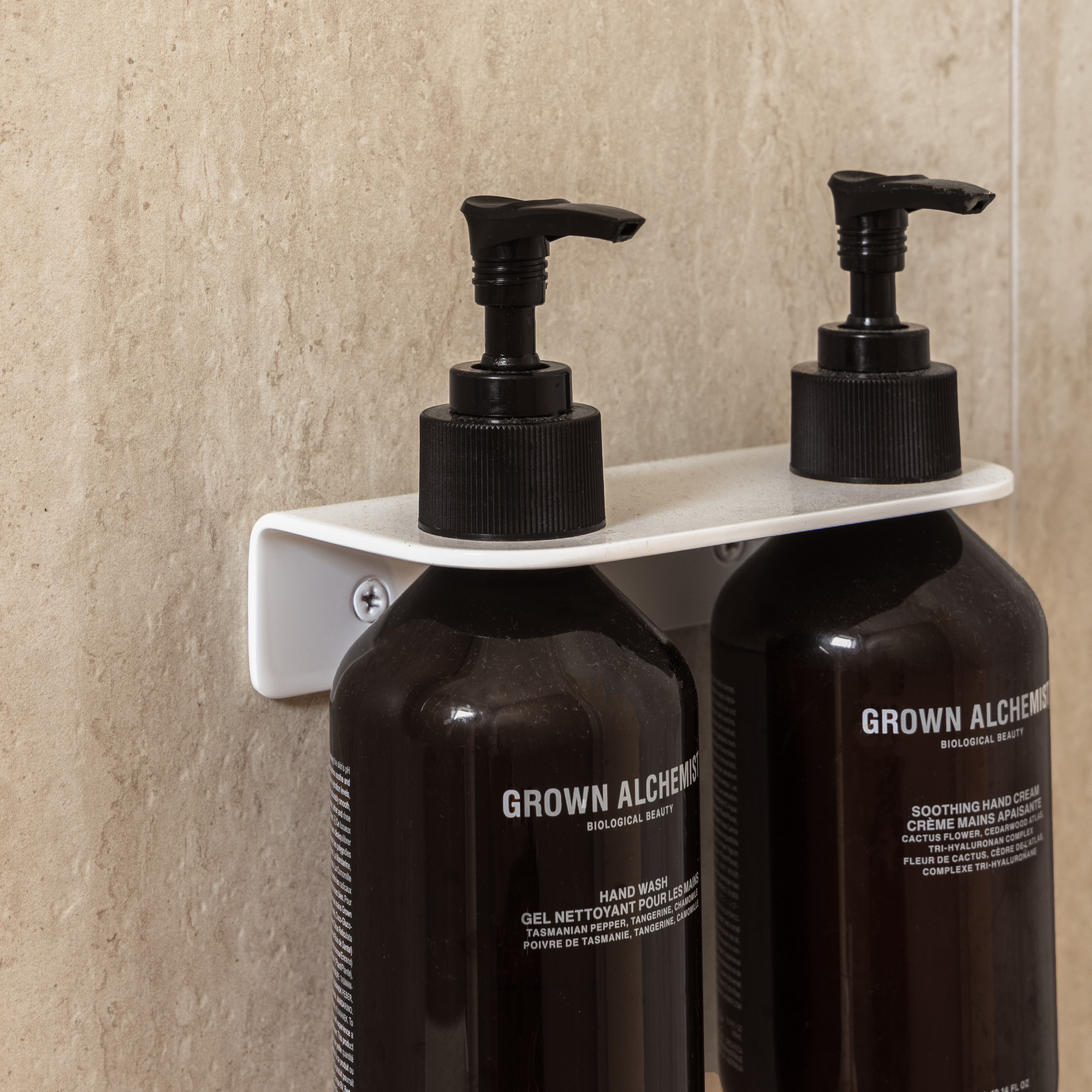 Expanding upon our existing Lira range, and wall mounted for bathroom or powder room handwashing and shower washing convenience; the Lira Soap Bottle Holder Double provides a stylish solution for your space.
