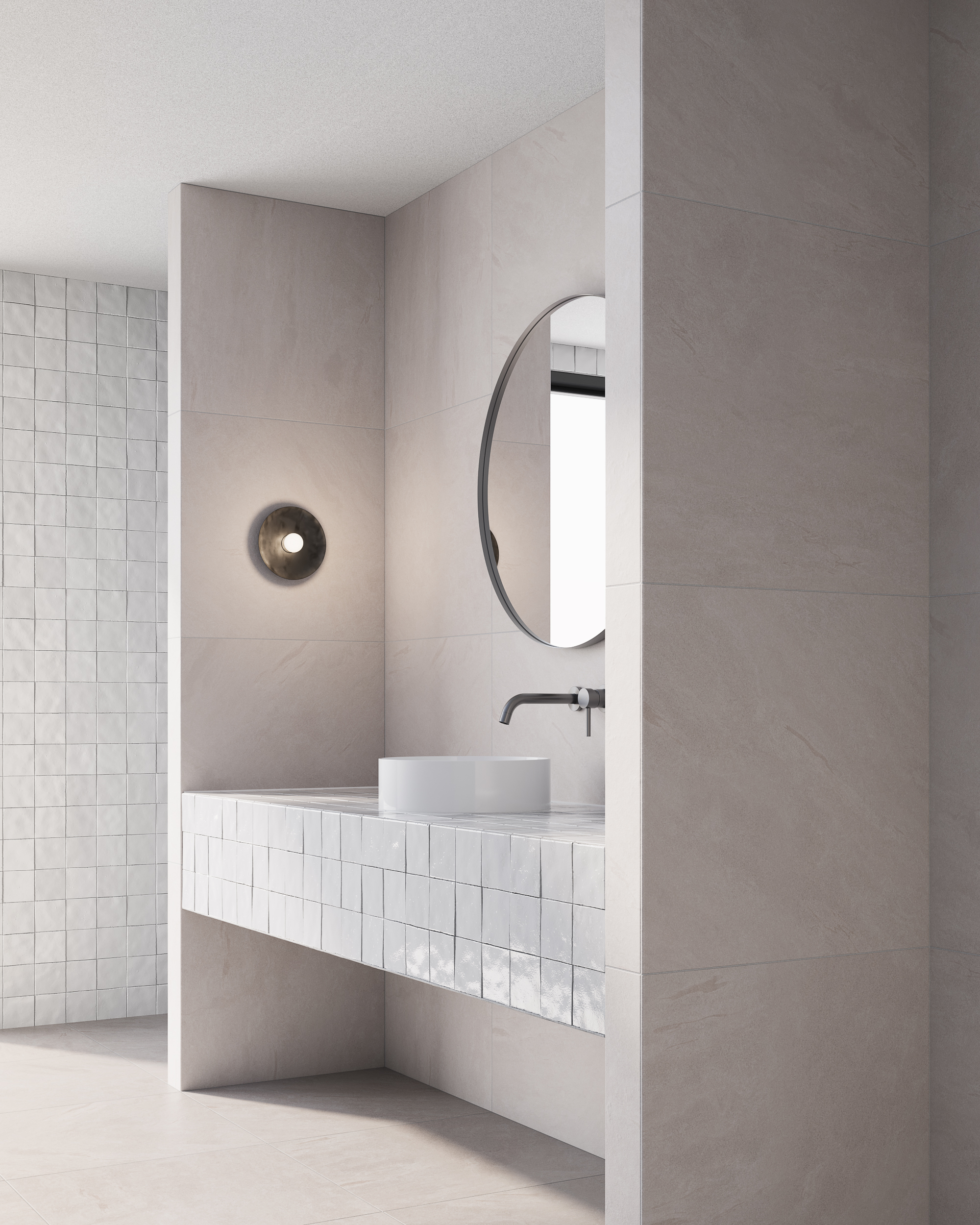 The design beautifully recreates natural limestone and has a unique textural surface, which increases its anti-slip properties. Due to their large format, these tiles are most suitable for populating large floor and wall spaces.