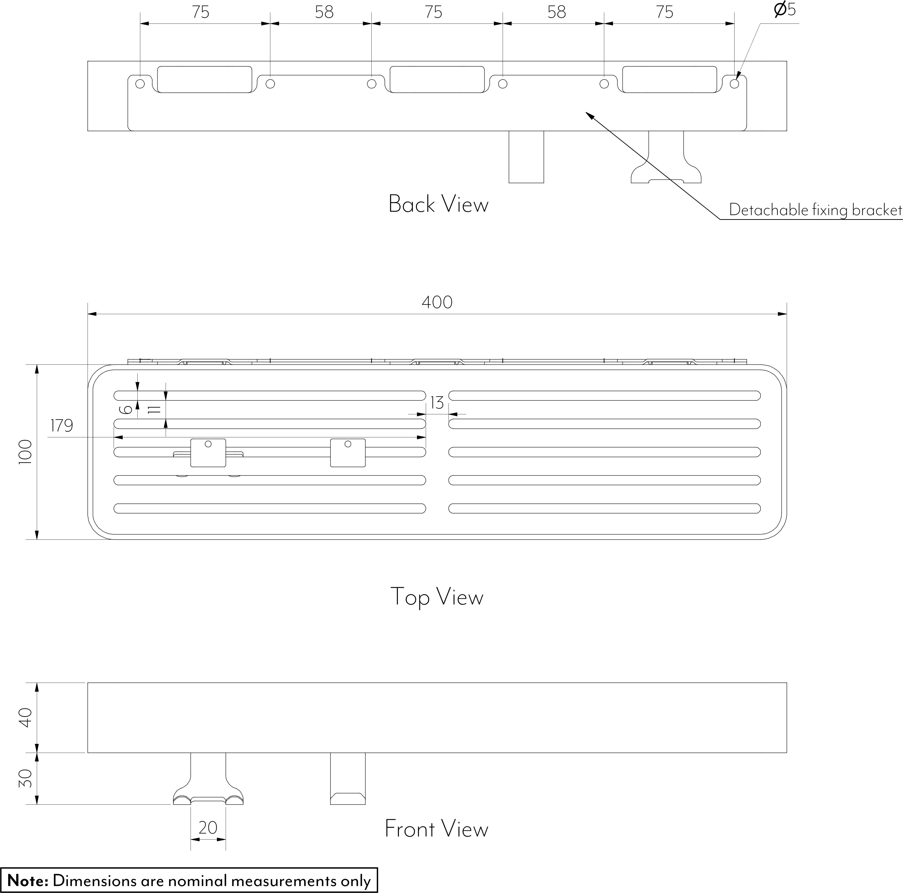 | Dimensions (mm) | Length: 400mm Width: 100mm Depth: 40mm |