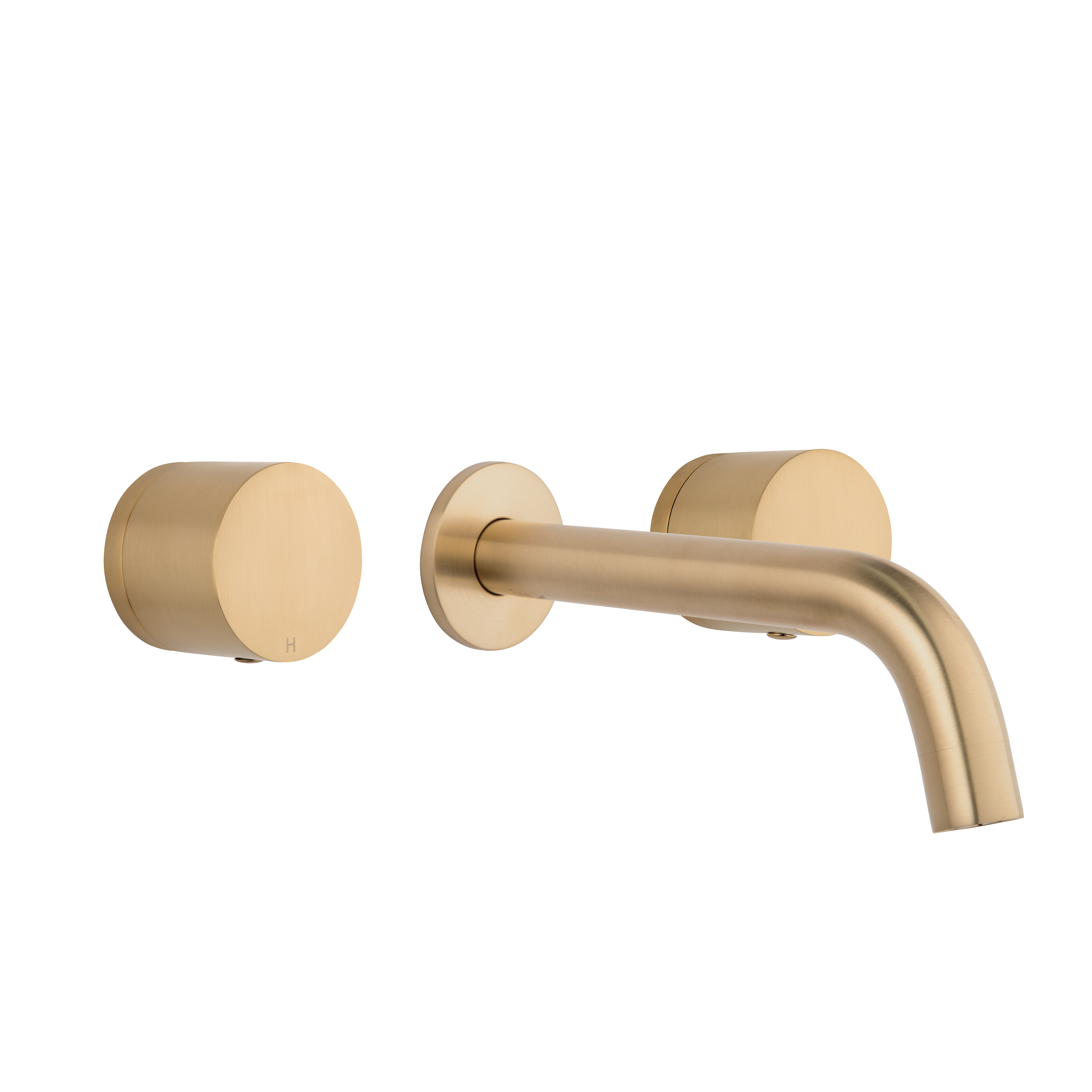 Paired with a sleek, wall-mounted brass spout, the set is ideal for both basins and baths, bringing refined functionality and sophistication to any bathroom.