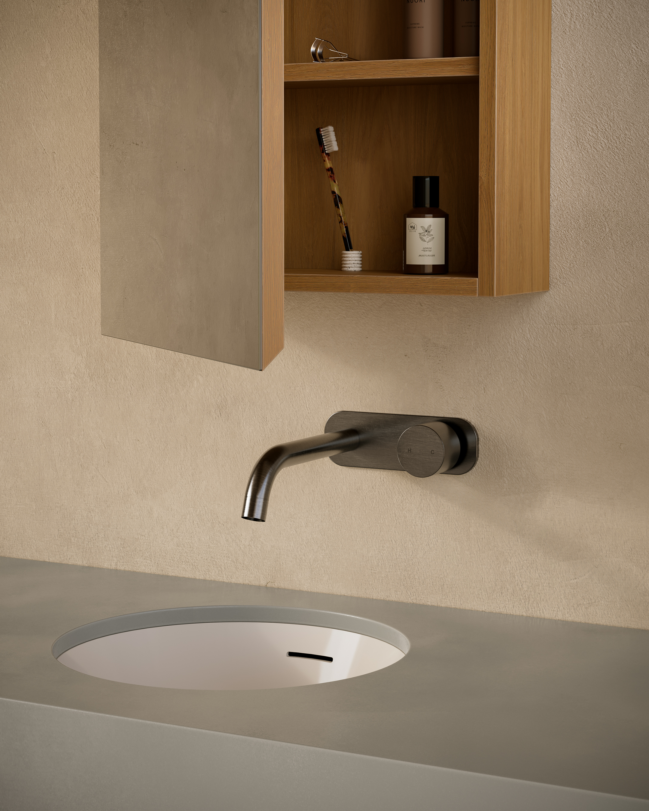 Home / Shop All / Tapware / Bathroom Tapware / Spout & Tap Sets / Milani Progressive Wall Mounted Set – Brushed Gunmetal