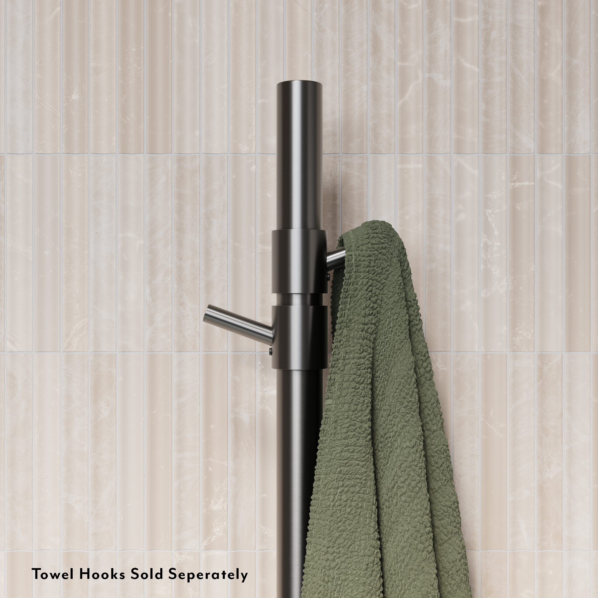 The Modi Towel Hook Set is designed to pair seamlessly with our Modi Heated Towel Rail and includes two adjustable hooks for effortless towel hanging. These hooks are thoughtfully designed to allow towels to drape around the rail, ensuring quick and efficient drying.