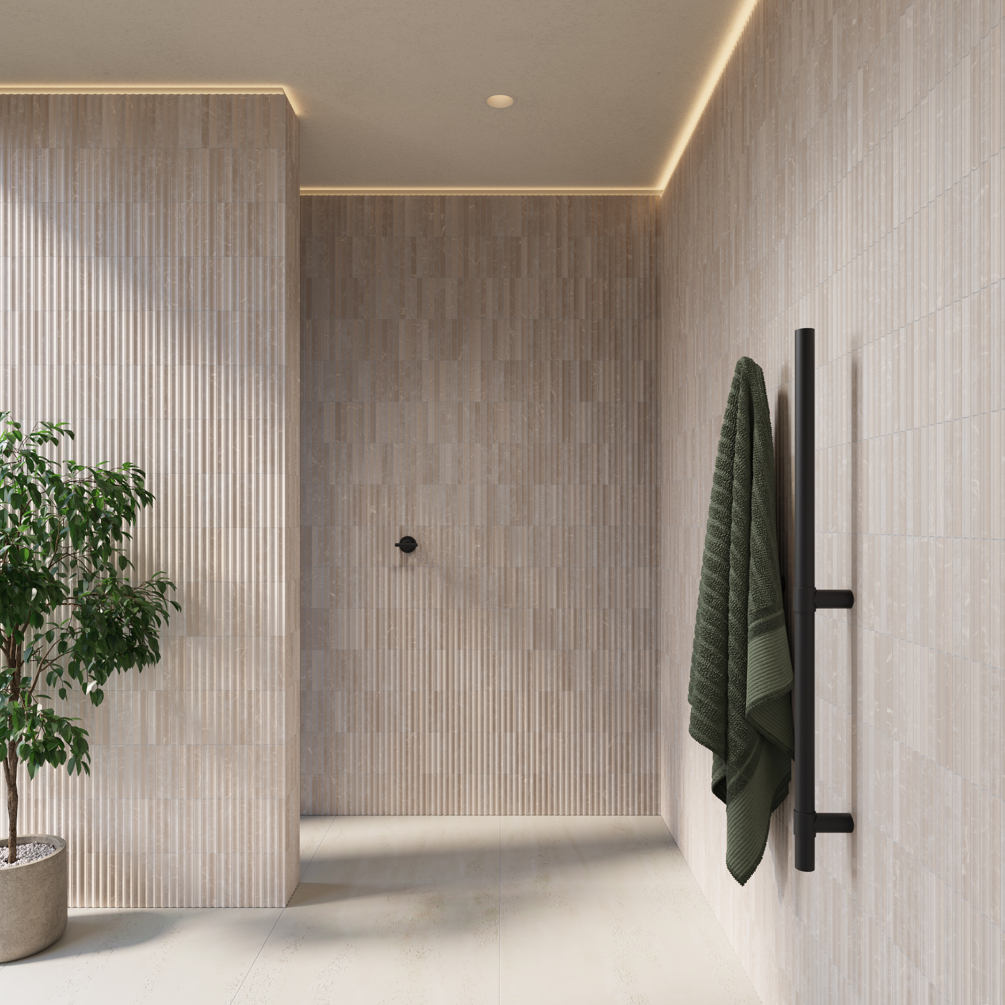 The Modi Adjustable Heated Towel Rail is a wall-mounted unit featuring a 12V heated vertical mounting rail and an adjustable top fixing. This design allows for maximum customisation and flexibility, with the added benefit of warm towels — perfect for cooler climates.