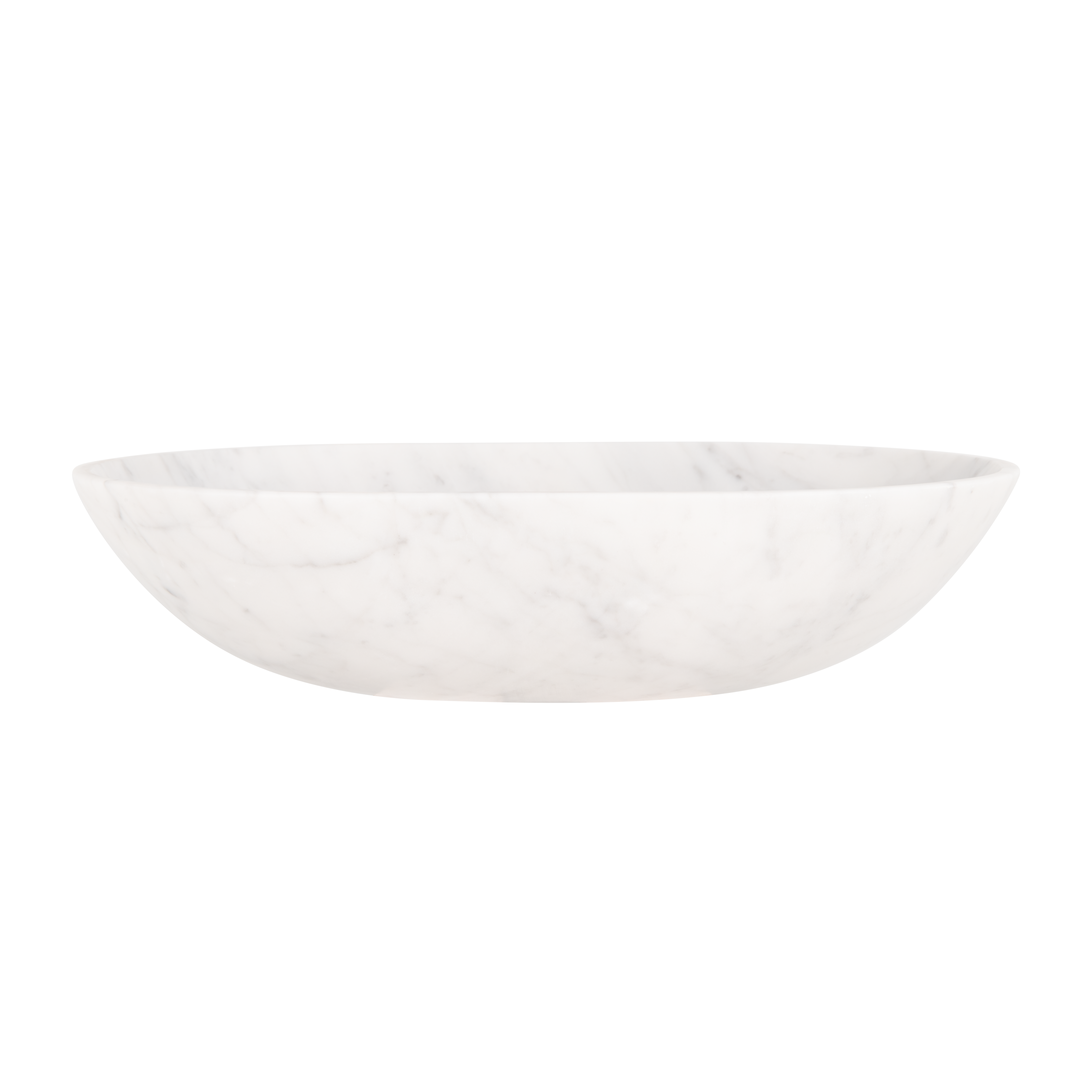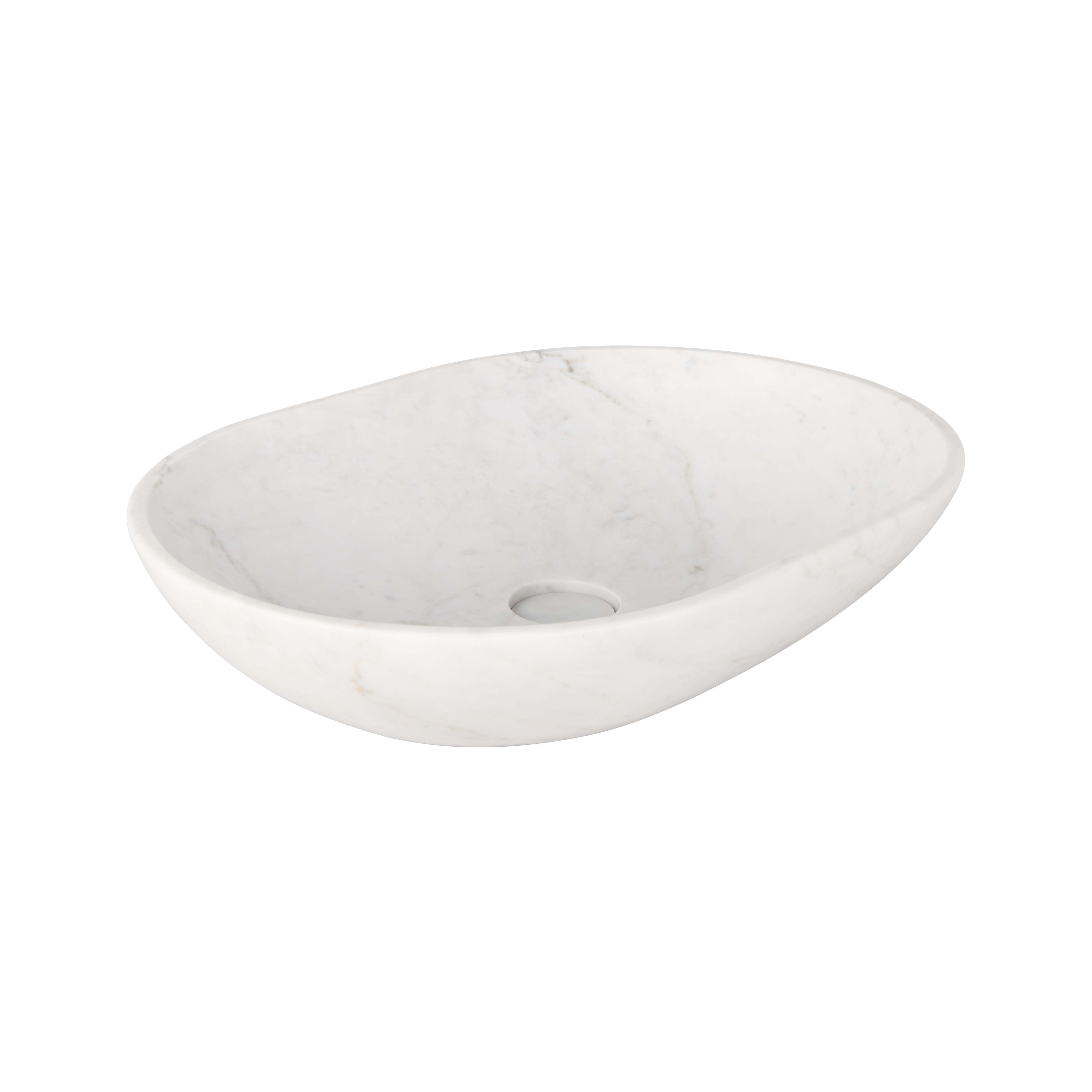 The Pedra Oval Basin Sink is crafted from solid Carrara marble and features a sleek, curved design that exudes understated elegance. Its bench-mounted design suits both singular and double bathroom vanities.