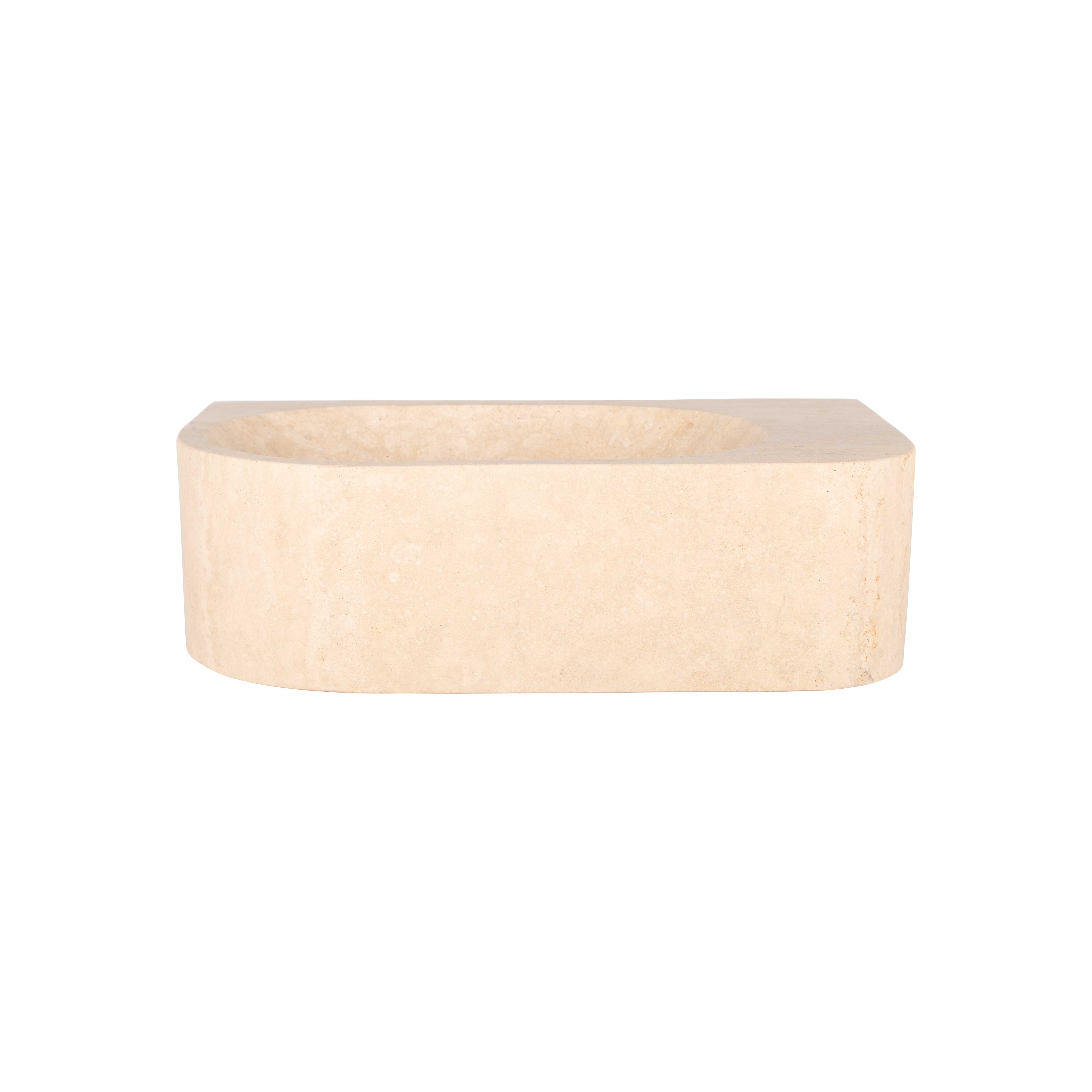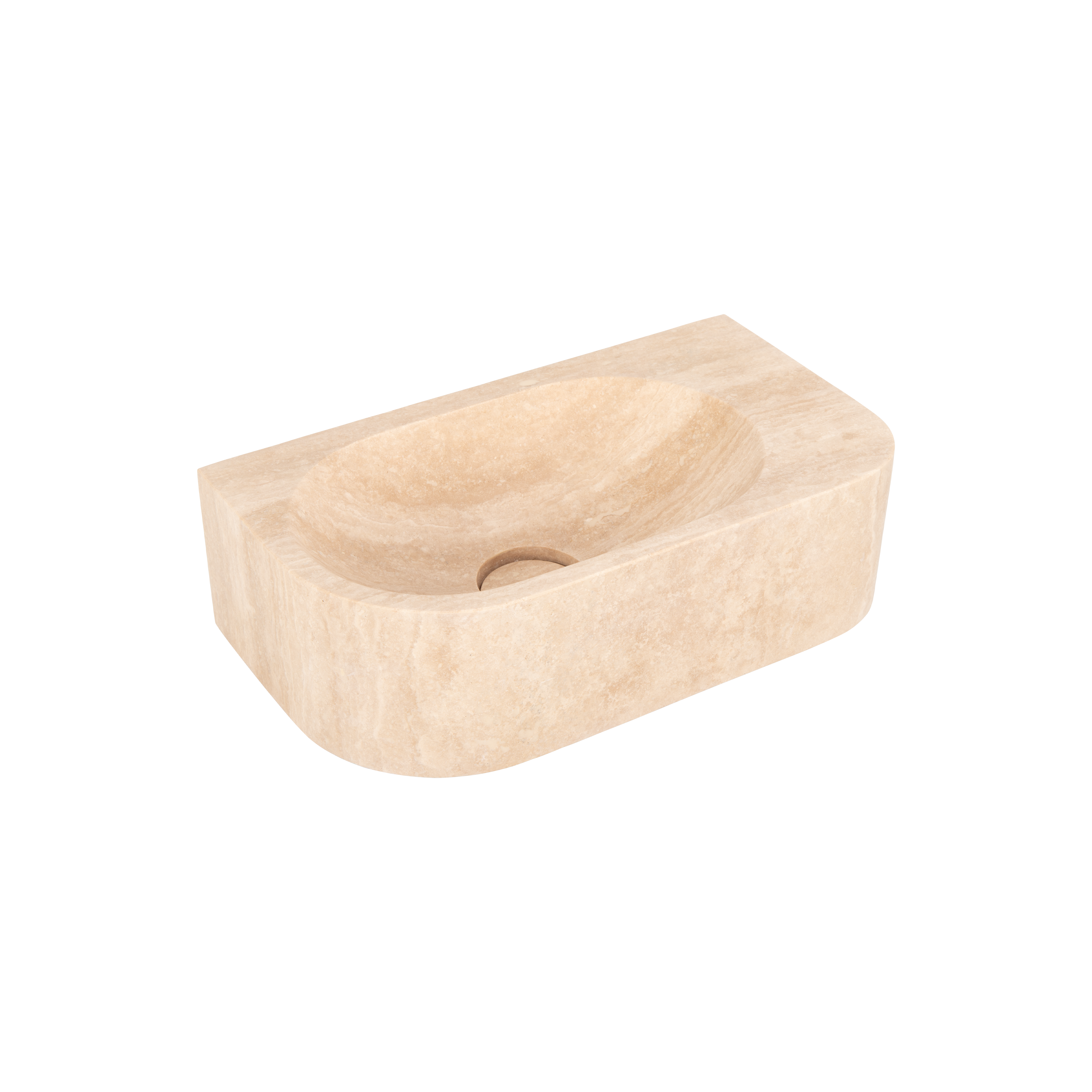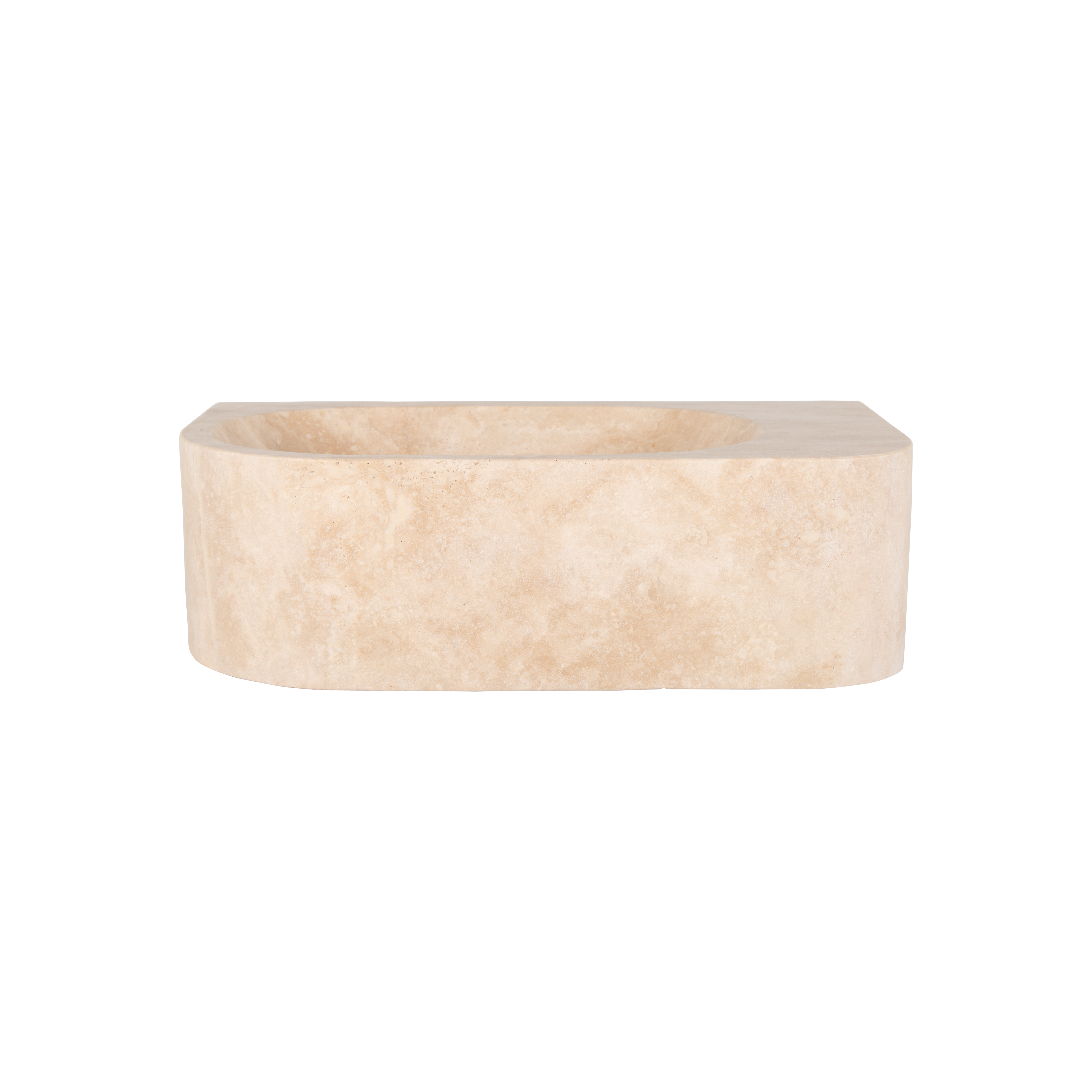 The Pedra Wall-Hung Basin is crafted from solid travertine stone and features a sleek, curved design that exudes understated elegance. Its convenient wall-mounted design is ideal for smaller spaces.