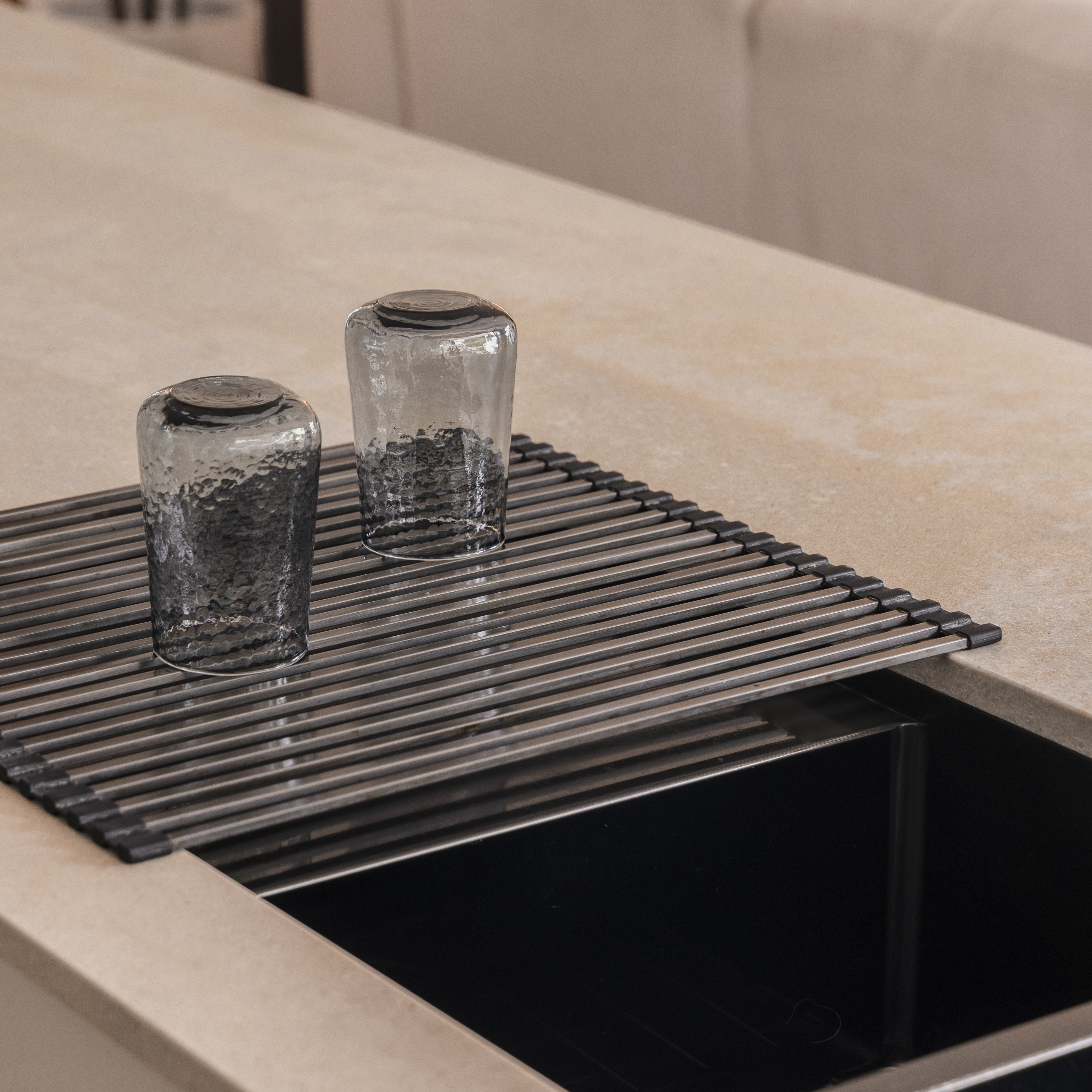 The perfect companion to the ABI stainless steel sink range. This product is designed to be durable for long-lasting practicality. The mat is simply rolled over the surface of the sink with self gripping rubbers holding it to either your bench-top or the stainless steel sink. It is an efficient alternative for drying all cutlery and dishes. No installation is required, you simply unpack and it is ready for use.