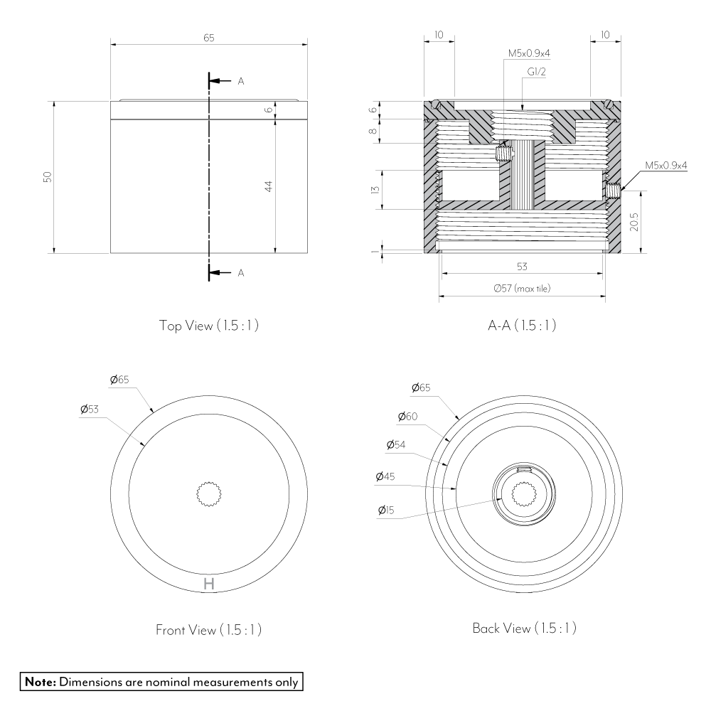 | Dimensions (mm) | Diameter: 65mm Projection: 50mm |