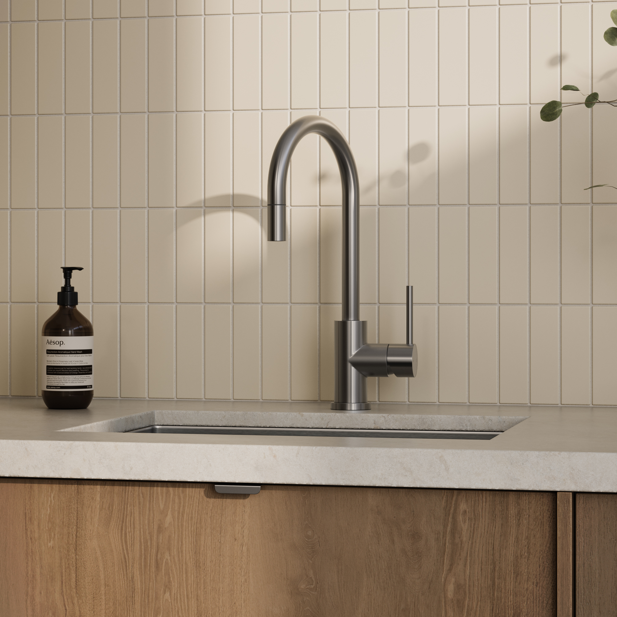 The Rappana Cabinetry pull is a unique handle that provides effortless openings for all cabinetry. A smaller sized pull, its slimline minimalistic style ensures effortless, unforced openings every time. Optimum longevity is accomplished by a discreet, hand-folded and welded design that utilises high-grade stainless steel and works in complete sync with ABI’s unique colour range.