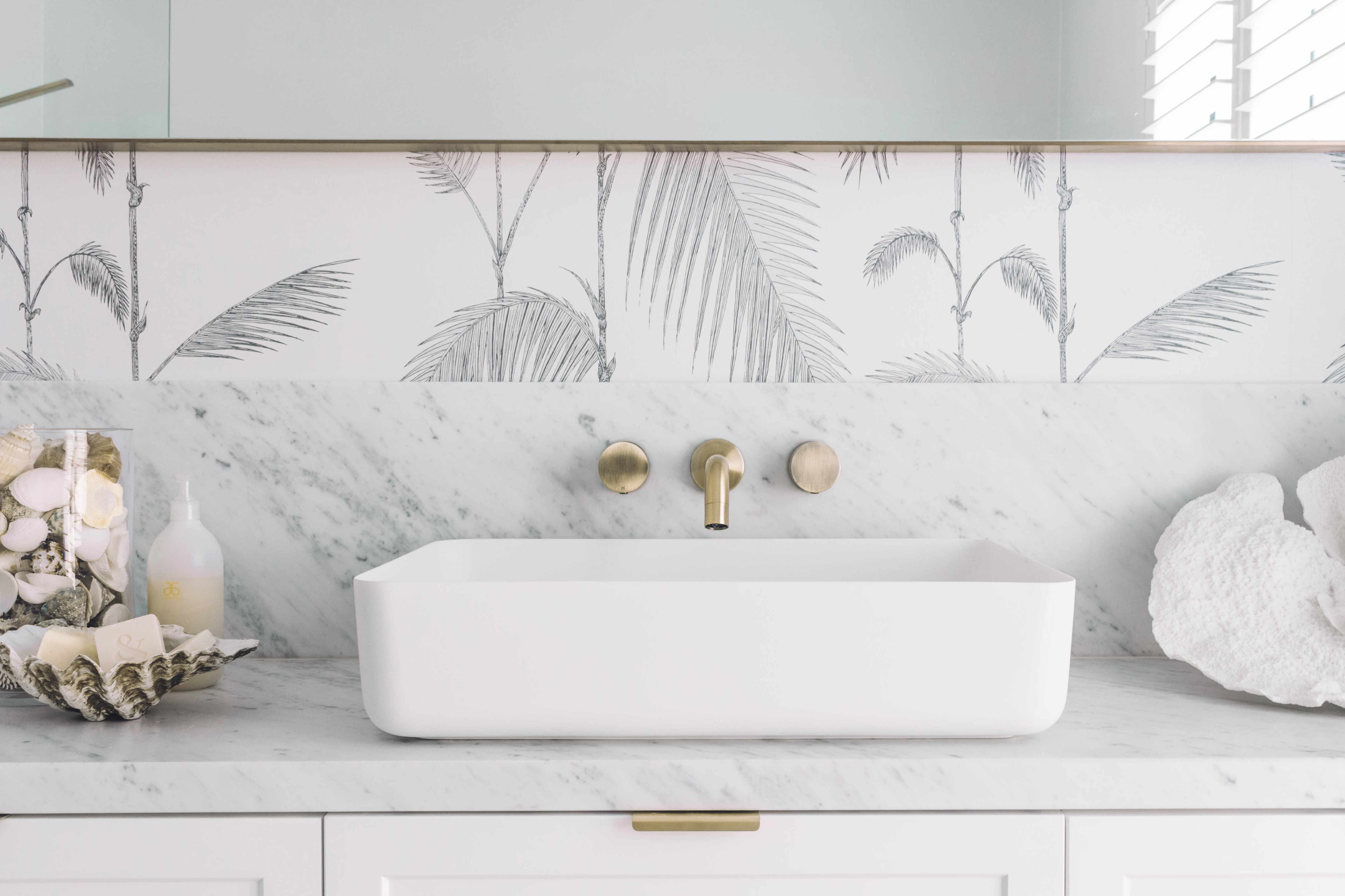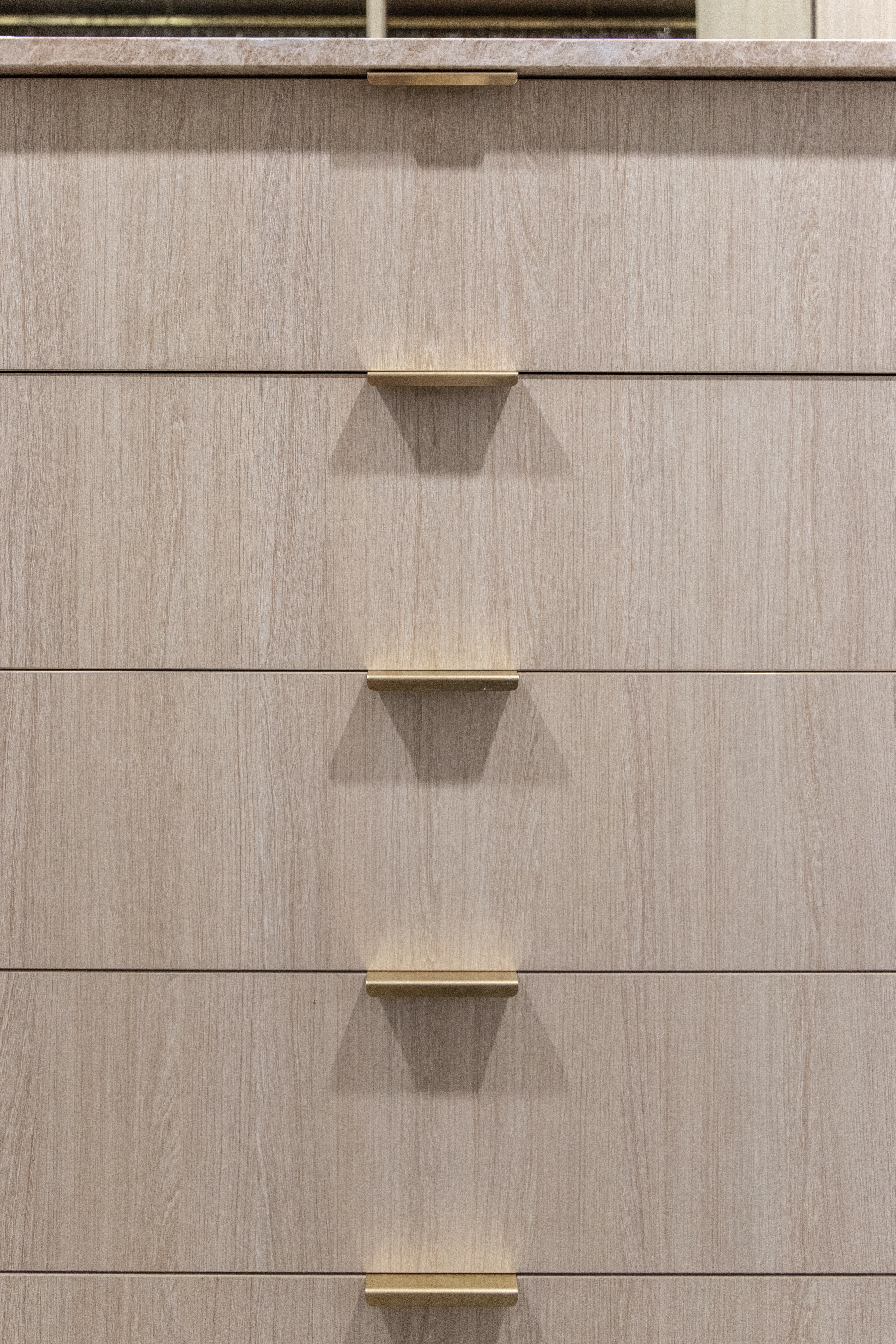 This brass pull on the drawer of my new bathroom vanity looks perfect.