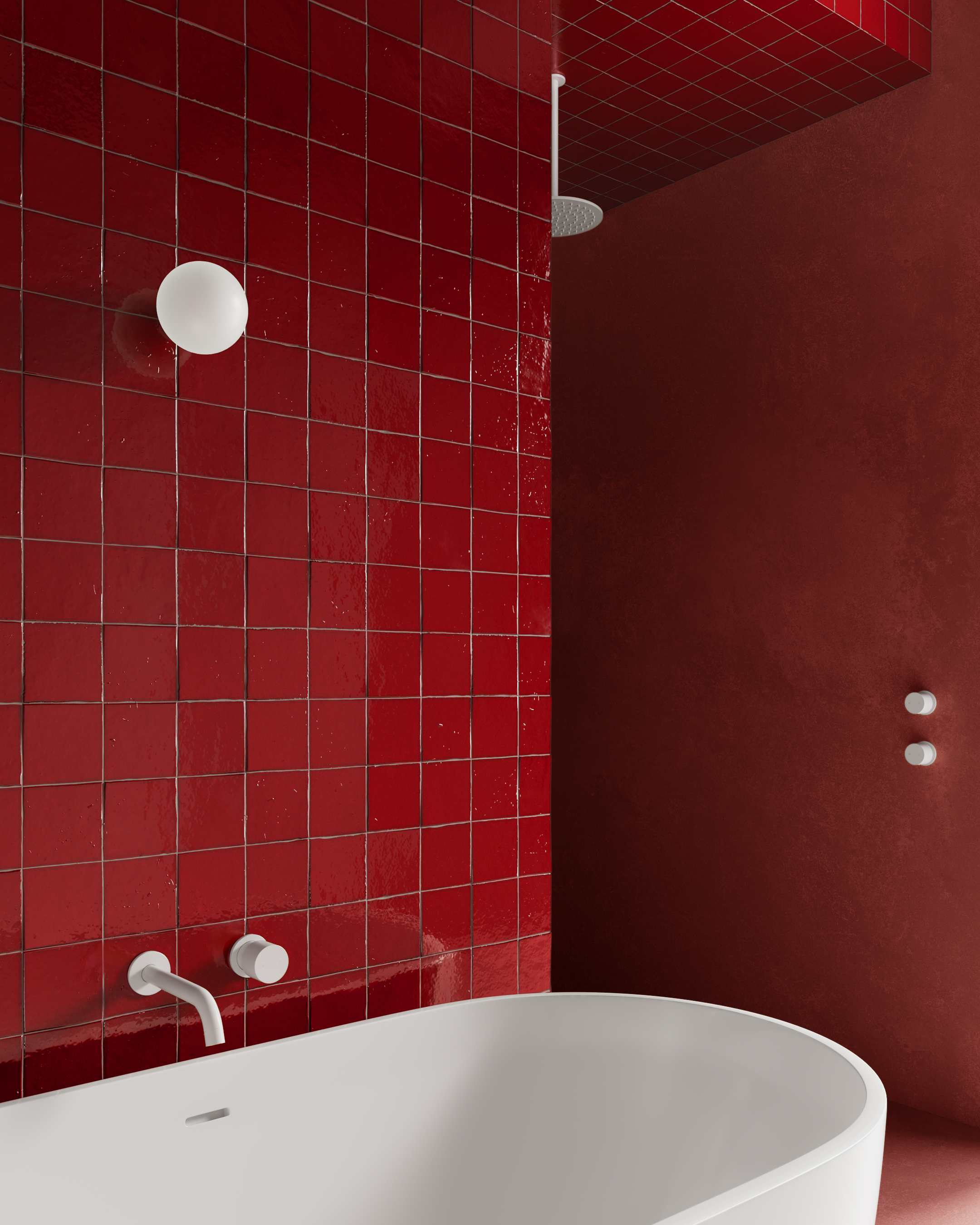 Rommani Handmade Zellige Square Tile - Cherry (Sample)
