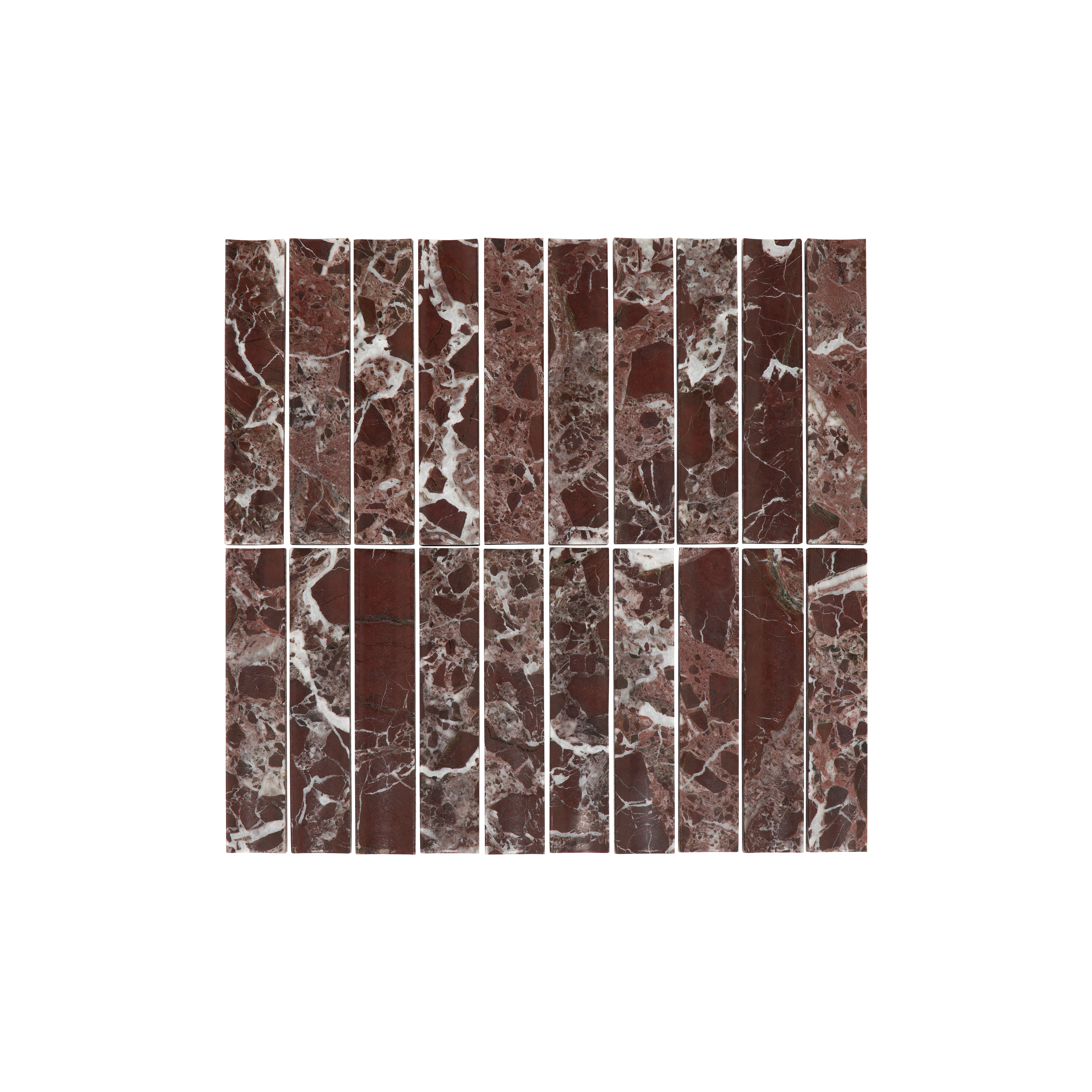 The Rosso Levanto Inverted Finger Mosaic is a natural stone tile with a honed marble finish designed for feature walls and splashbacks.