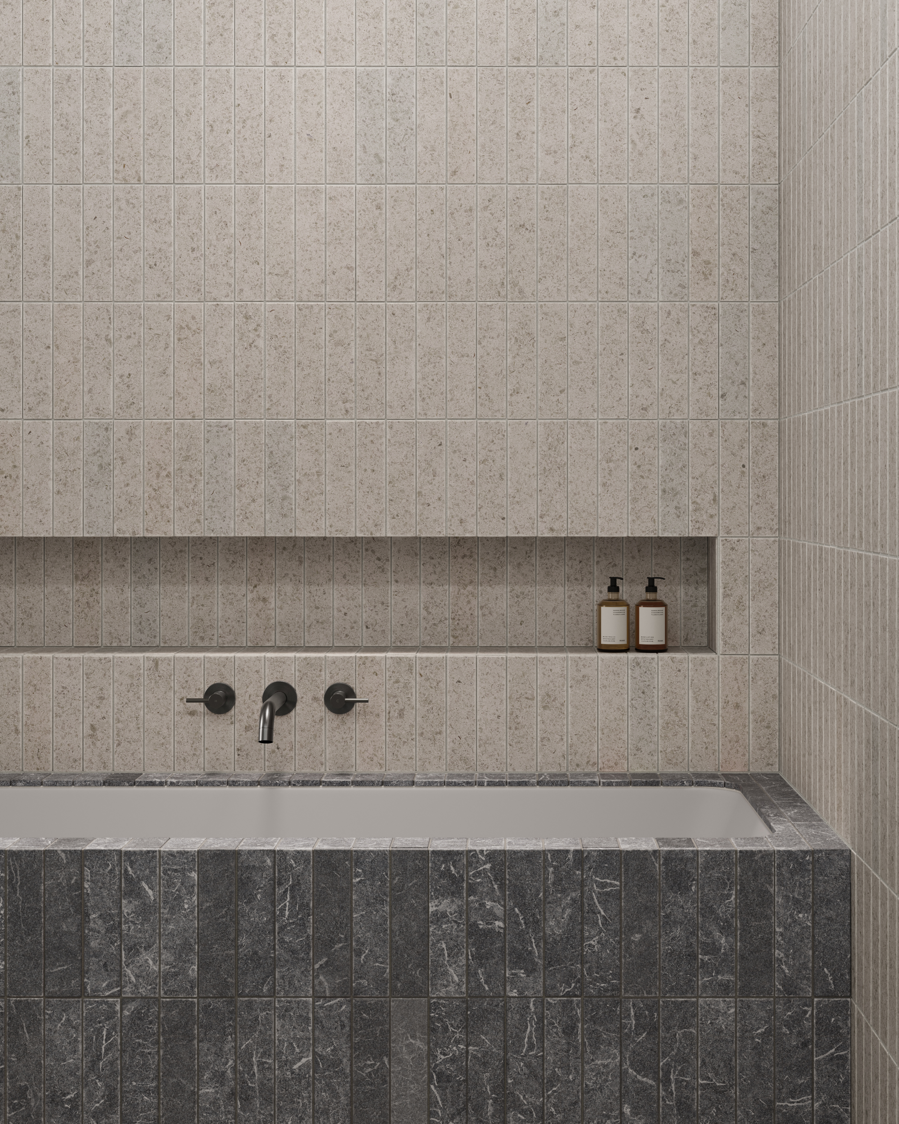 The Sienna Natural Stone Subway Tile in Salt is a refined stone tile designed for feature walls and splashbacks.