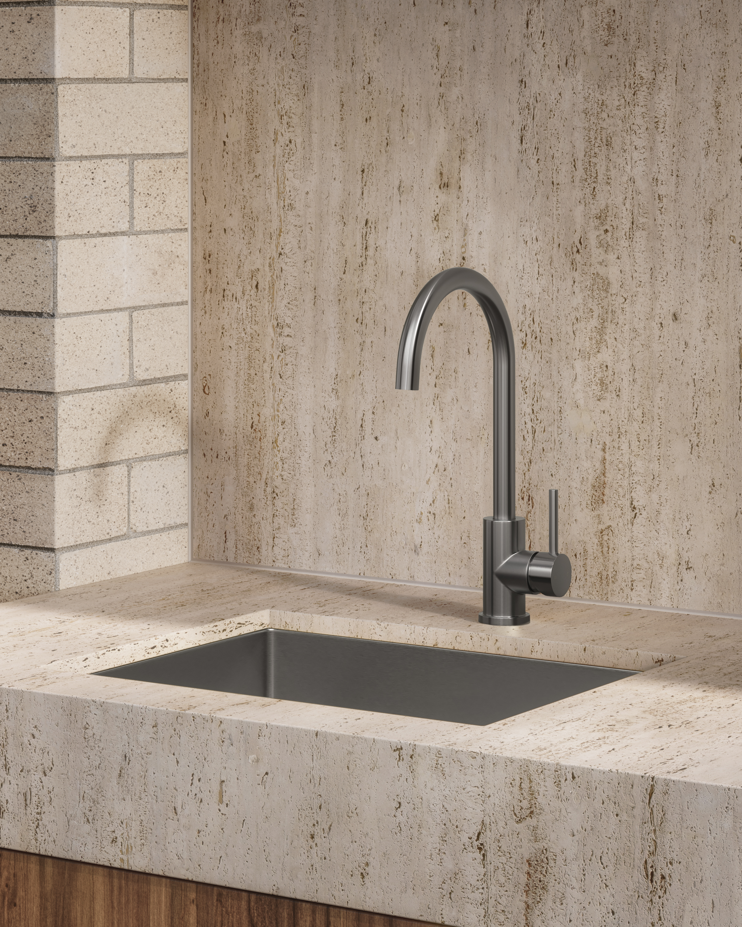 Home / Shop All / Tapware / Outdoor Tapware / Sola Kitchen Mixer – Brushed Gunmetal