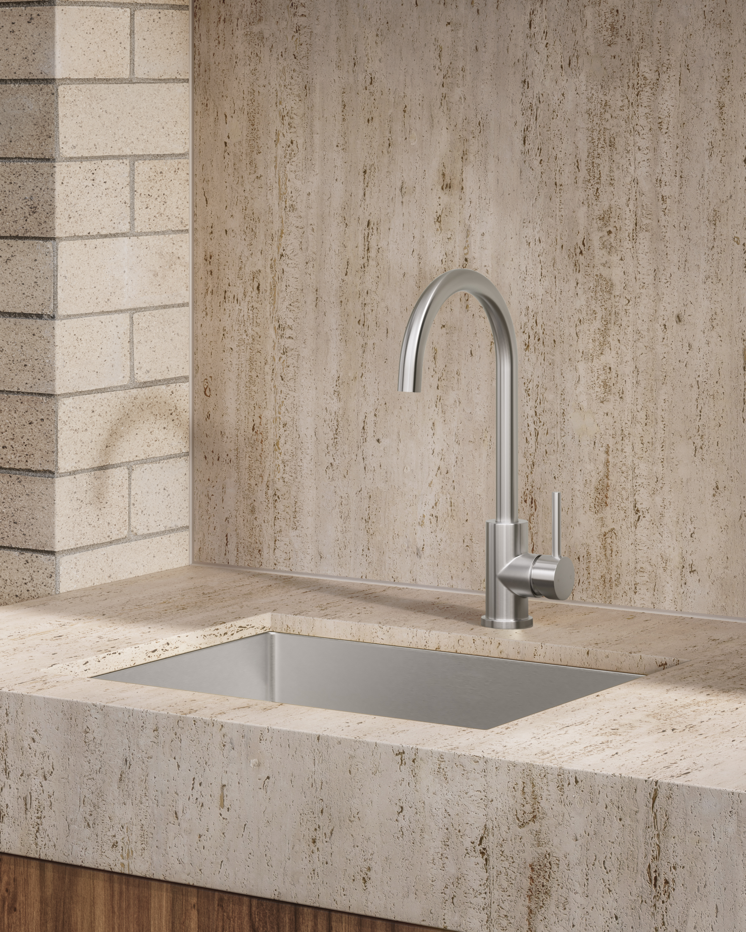 The smooth, elegant aesthetics of our contemporary Sola Kitchen Mixer is designed to complement our existing outdoor range. It is constructed from highly durable marine grade 316 stainless steel and features an easy-to-use swivel function with precise temperature and pressure control.