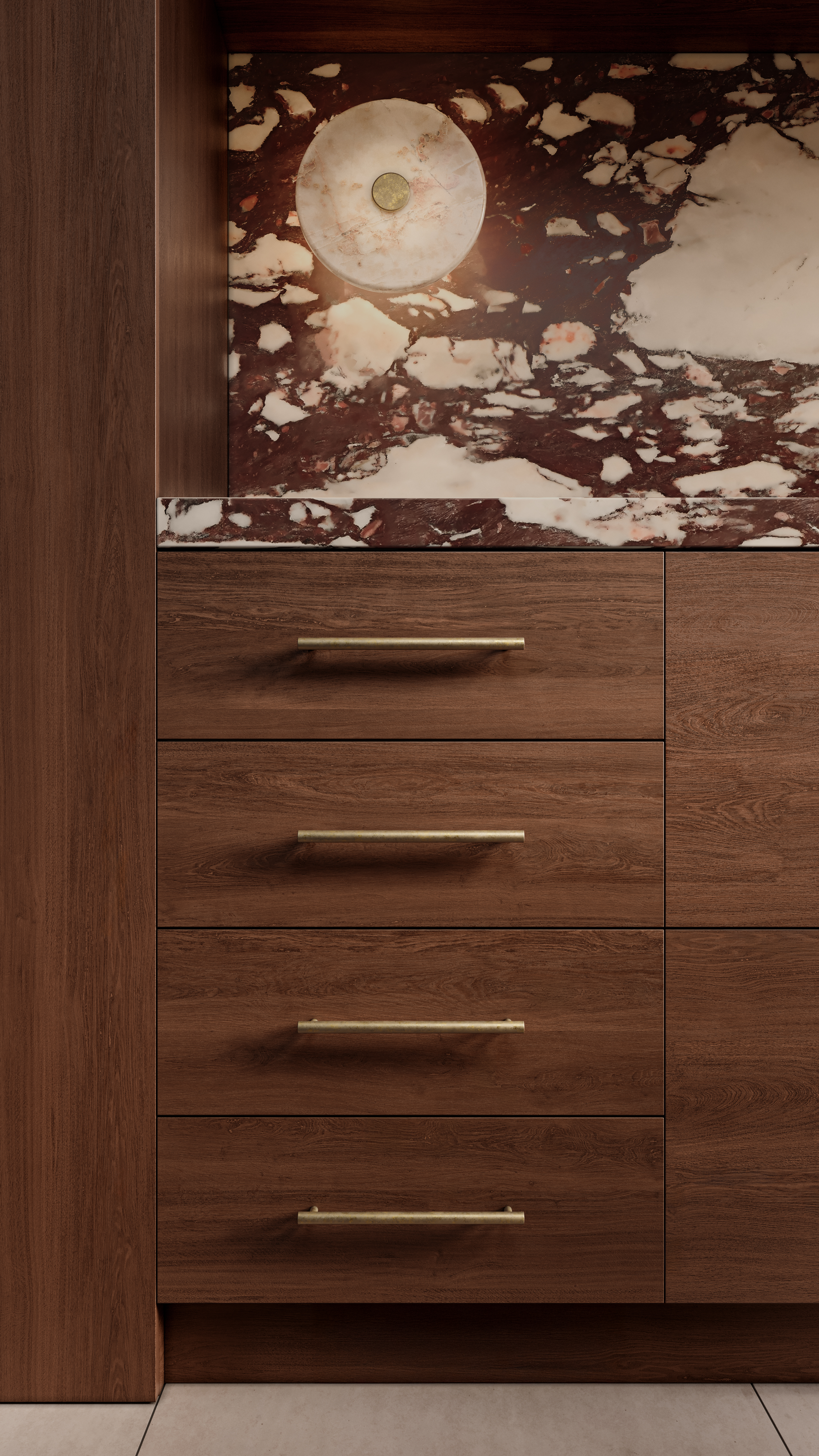 Crafted using our exclusive 3-step process that integrates ceramic and vibrational technology with the superior durability of advanced PVD, this finish features artisanal texture that exudes organic elegance. Its luxurious, hand-crafted feel sets it apart from more conventional brushed finishes, making it a striking statement piece that enhances both modern and traditional interiors.