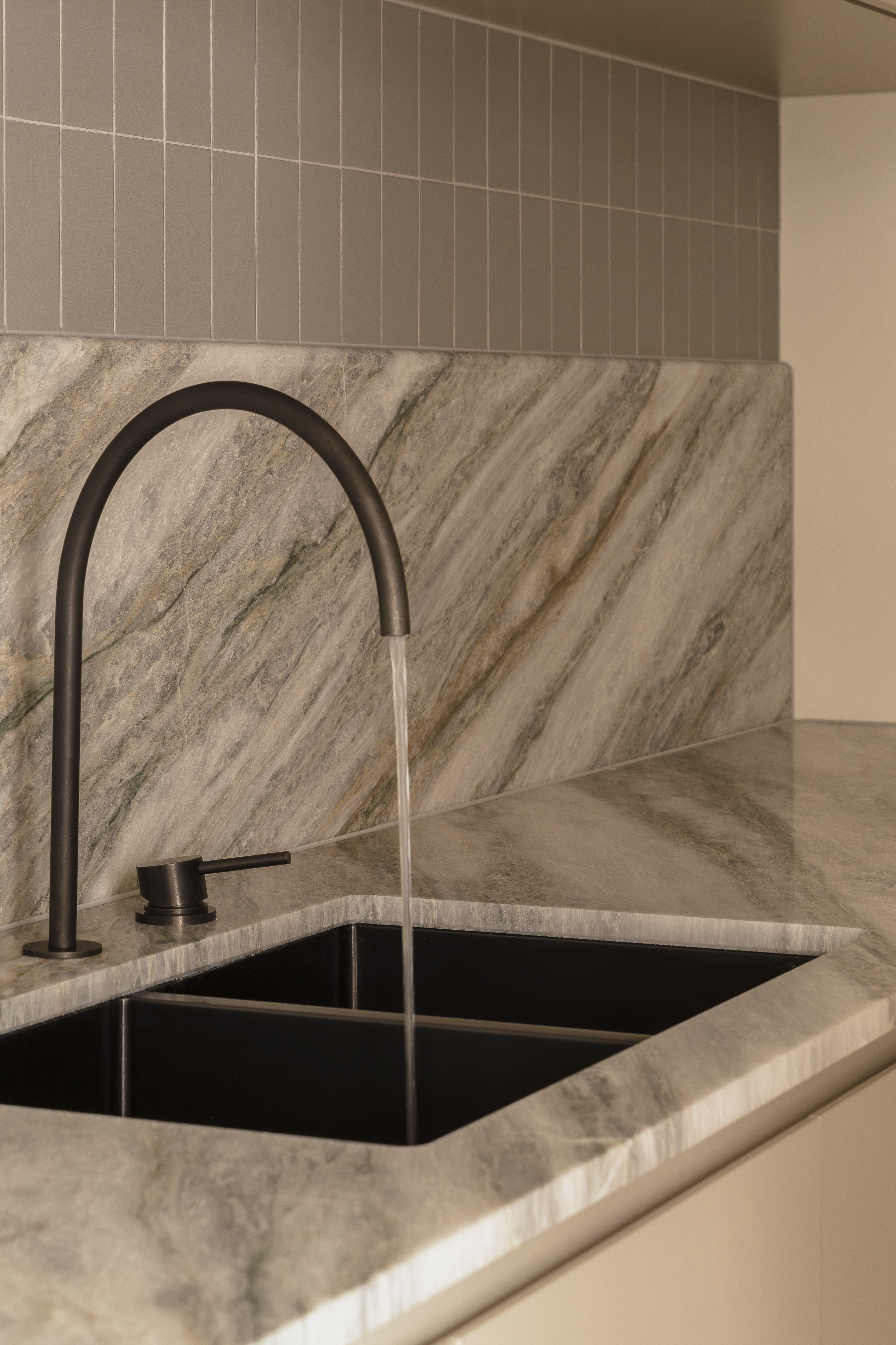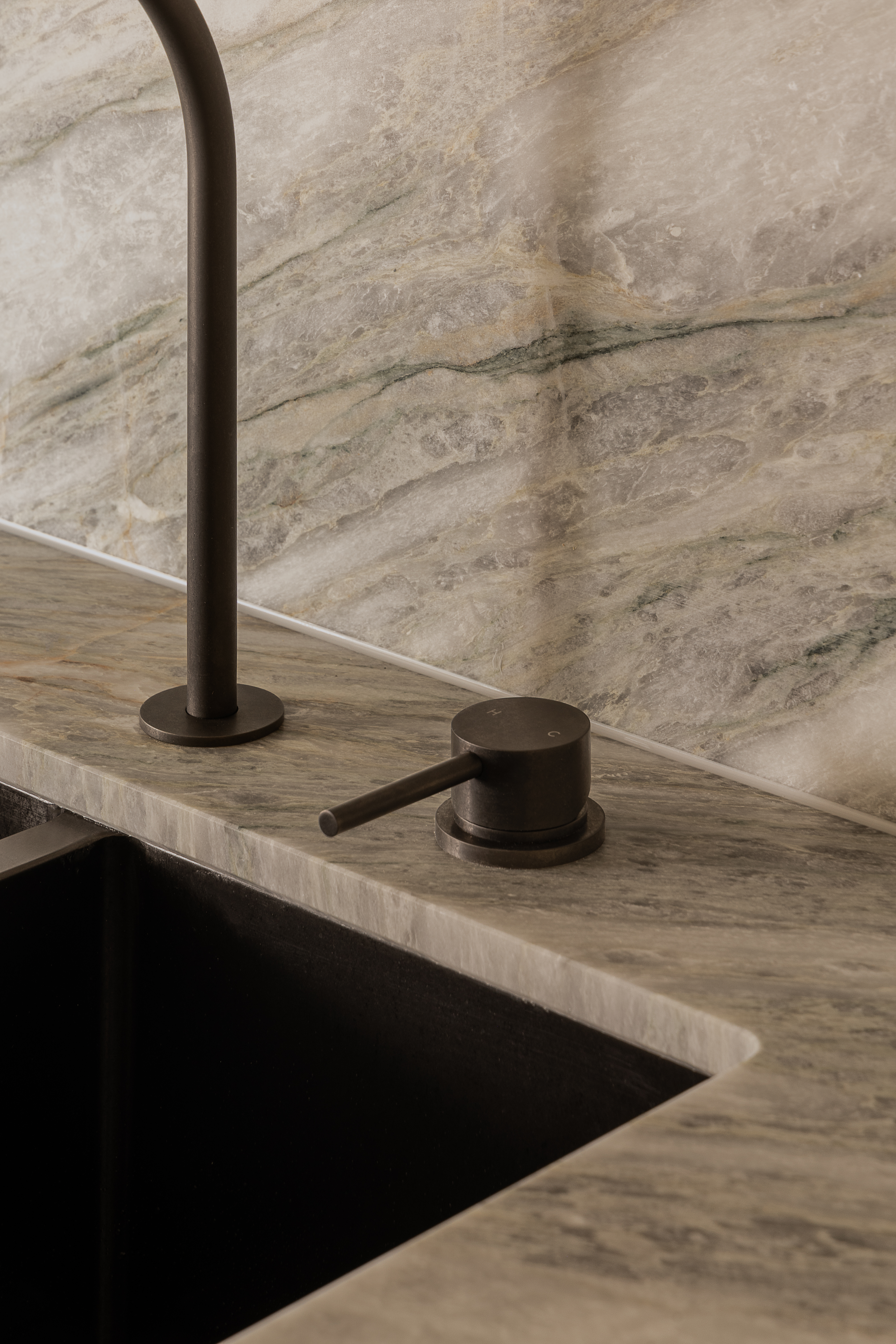 Crafted using our exclusive 3-step process that integrates ceramic and vibrational technology with the superior durability of advanced PVD, this finish features artisanal texture that exudes organic elegance. Its luxurious, hand-crafted feel sets it apart from more conventional brushed finishes, making it a striking statement piece that enhances both modern and traditional interiors.