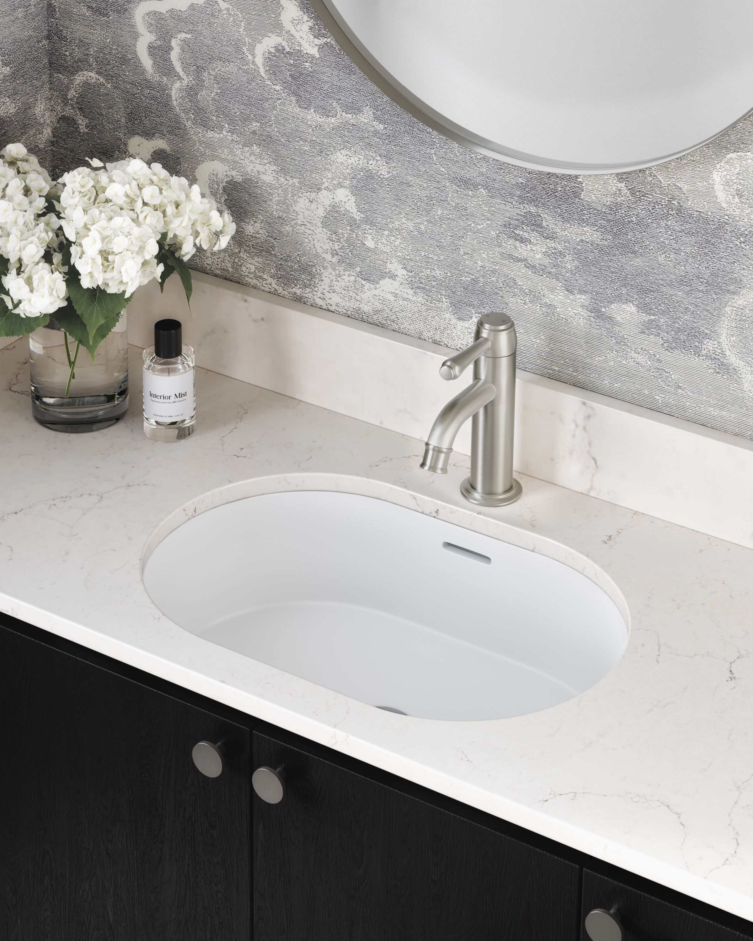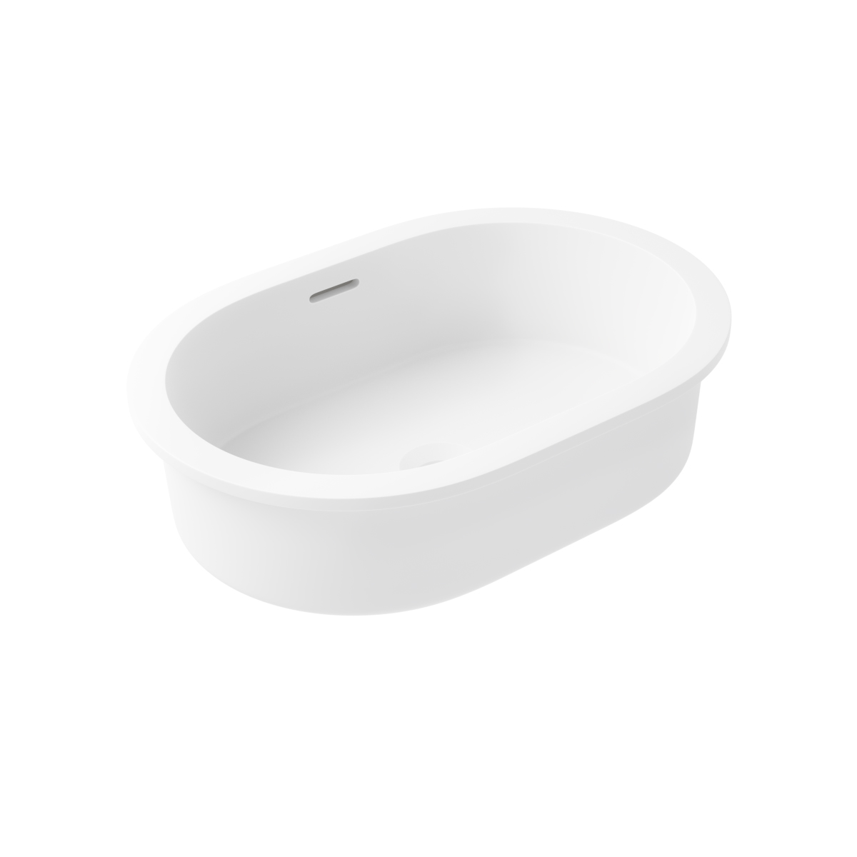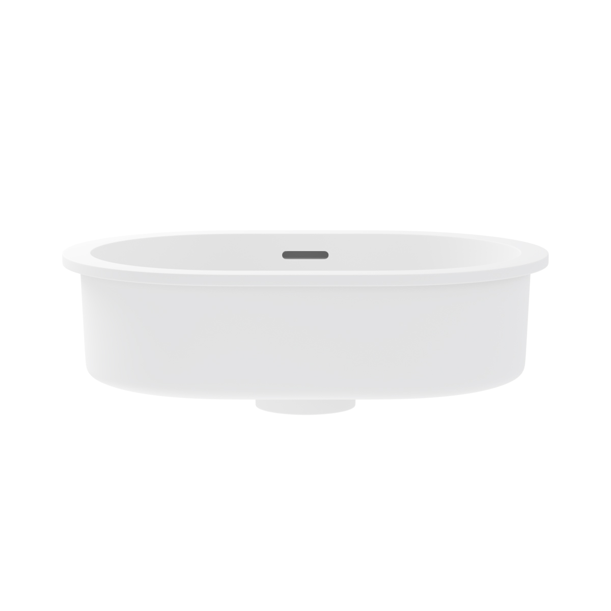 A pill-shaped undercounter basin with a flush, smart appearance, the Zuri enhances bathroom or powder room spaces. Its solid surface construction ensures superior strength and resistance, while its matte white finish reinforces its aesthetic appeal.