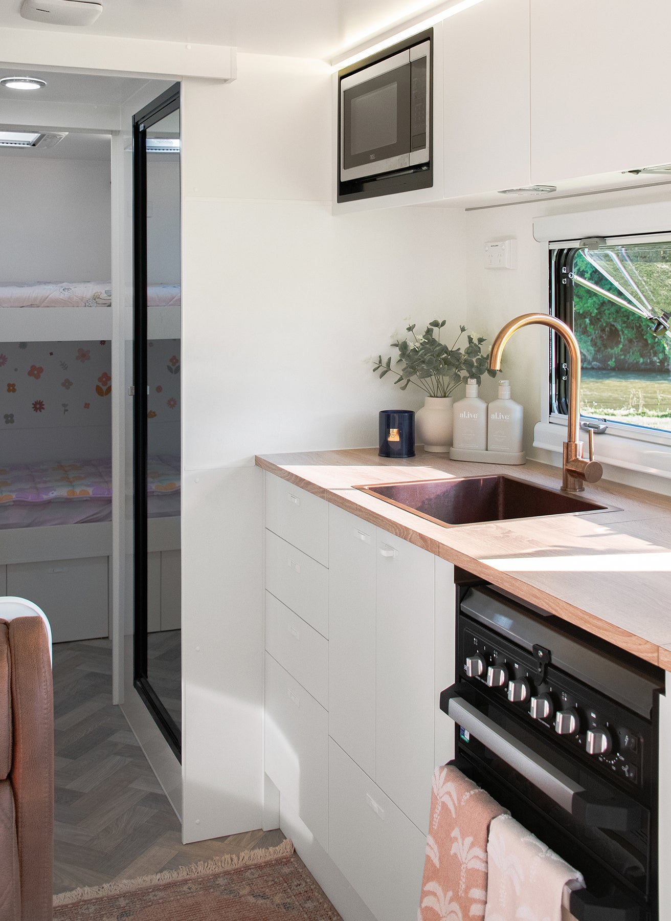 ABI Interiors enhances Titanium’s interiors with design-led sophistication, featuring brushed copper tapware, sinks, and accessories that bring warmth and contemporary refinement to the off-road experience.